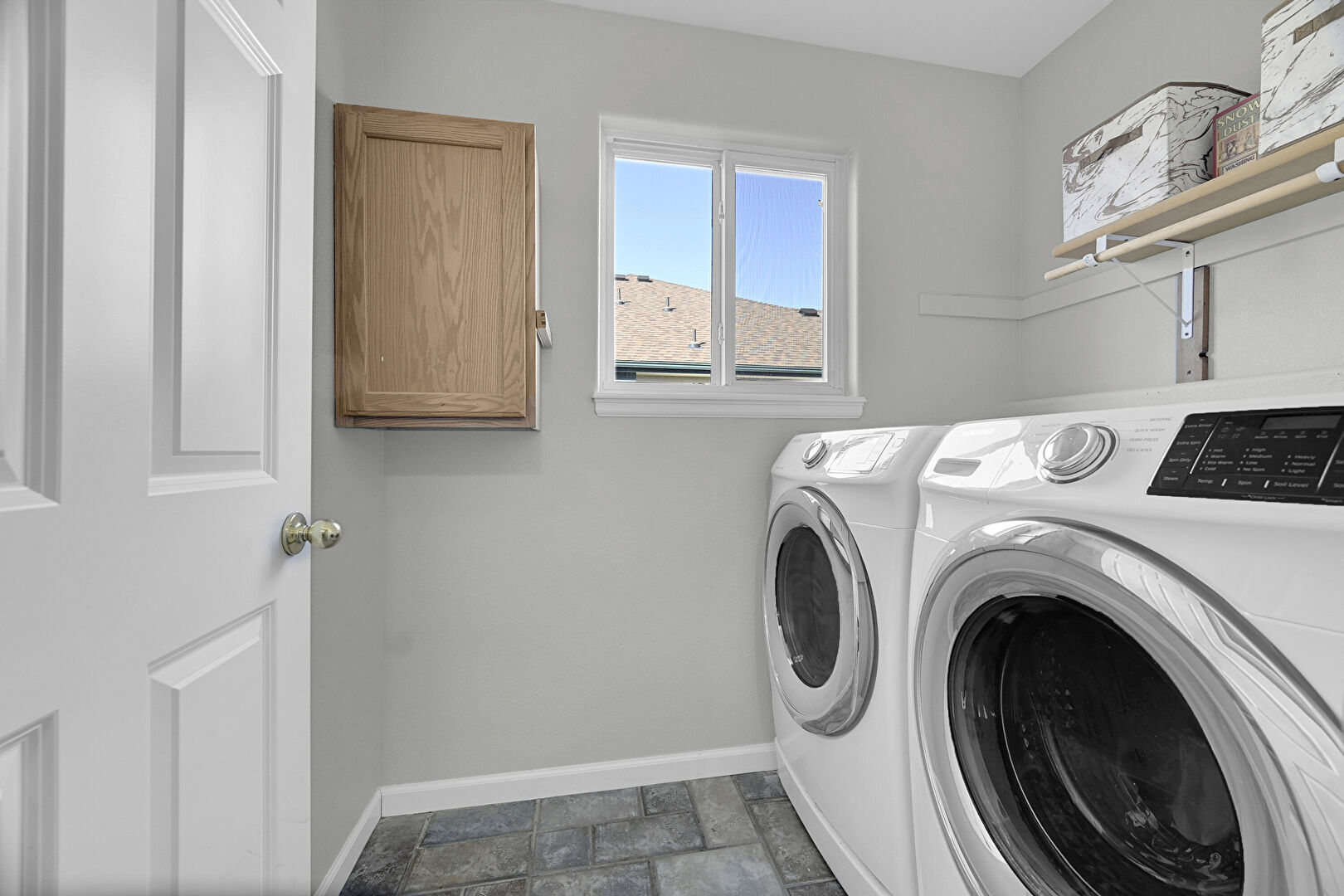 Baseboards Wall, Drywall, Natural Light, Stone Finish Floor, Laundry
