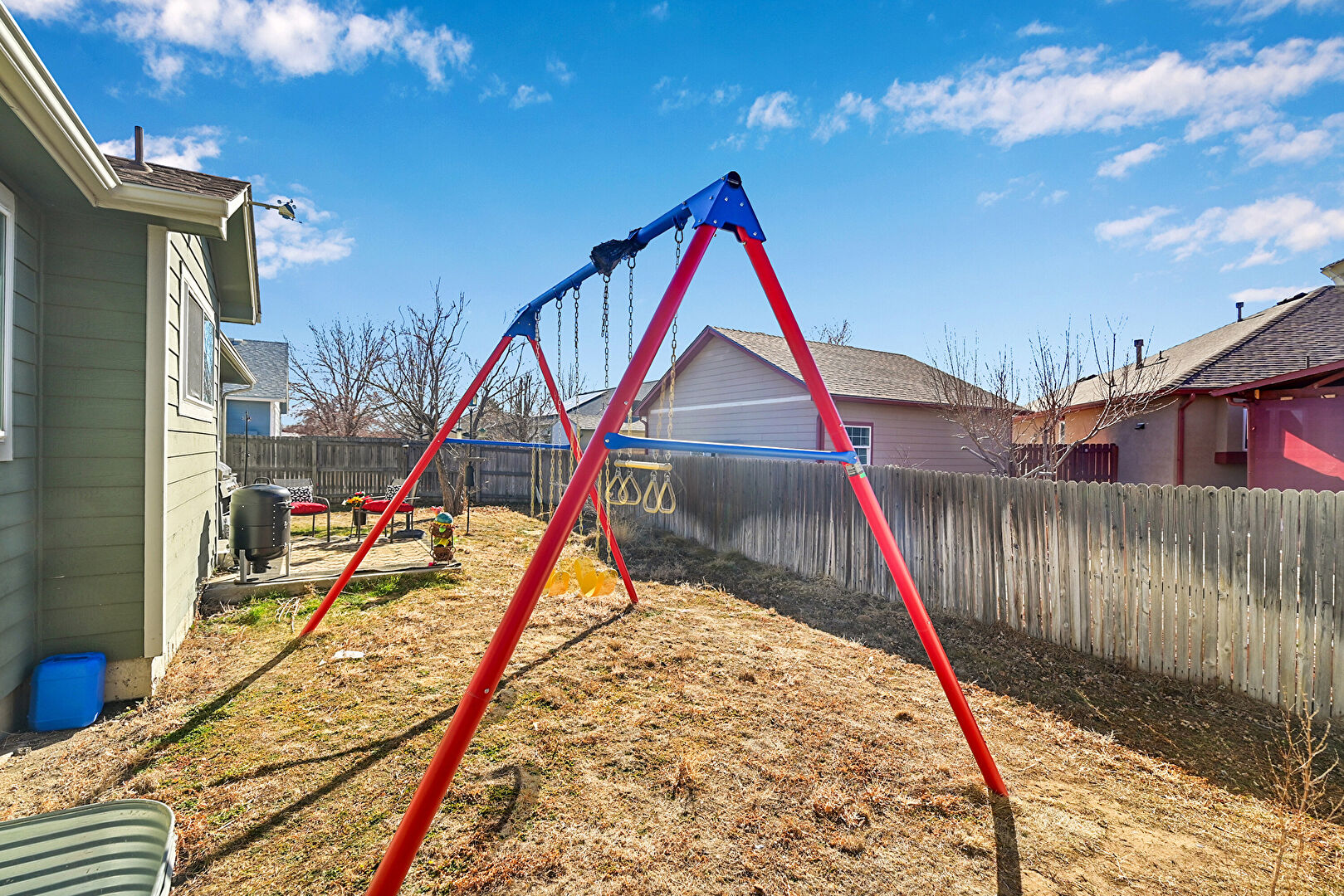Concrete Foundation, Downspout, Fence, Grill, Gutters, Horizontal Siding, Lawn, Outdoor Structure, Patio, Playground, Satellite Dish, Shed, Shingle Roof, Fence, Lawn, Patio, Satellite Dish