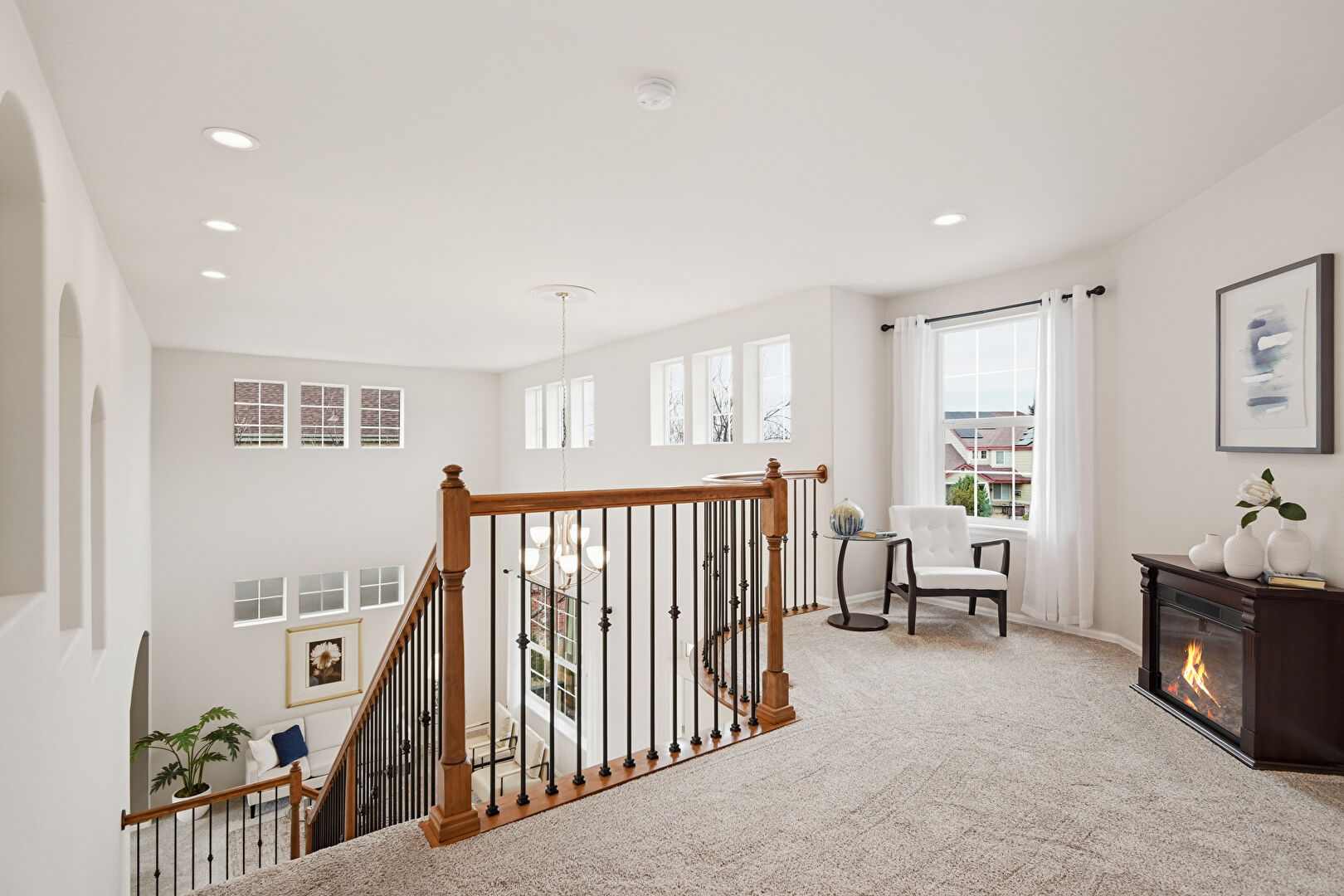 Arched Walkways, Baseboards Wall, Carpet, Drywall, Loft, Natural Light, Recessed Lighting, Smoke Carbon Monoxide Detector, Upstairs Landing, Vent, Arched Walkways, Carpet, Drywall, Vent