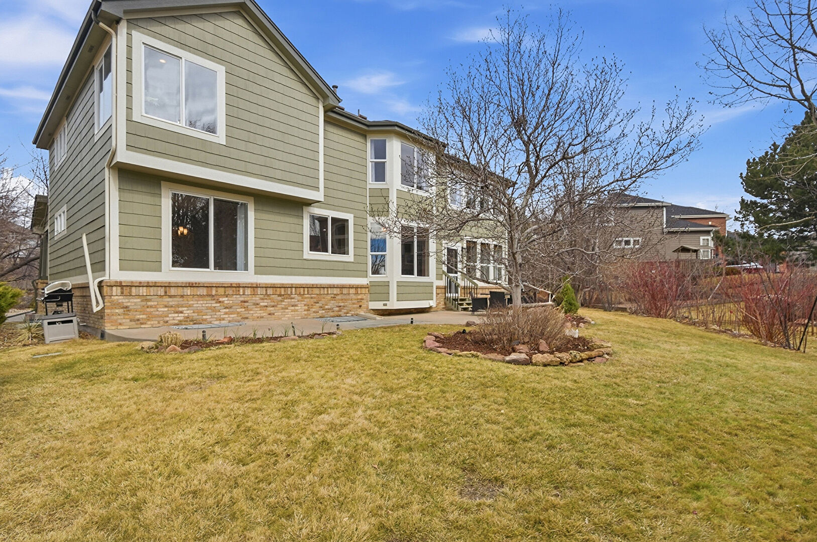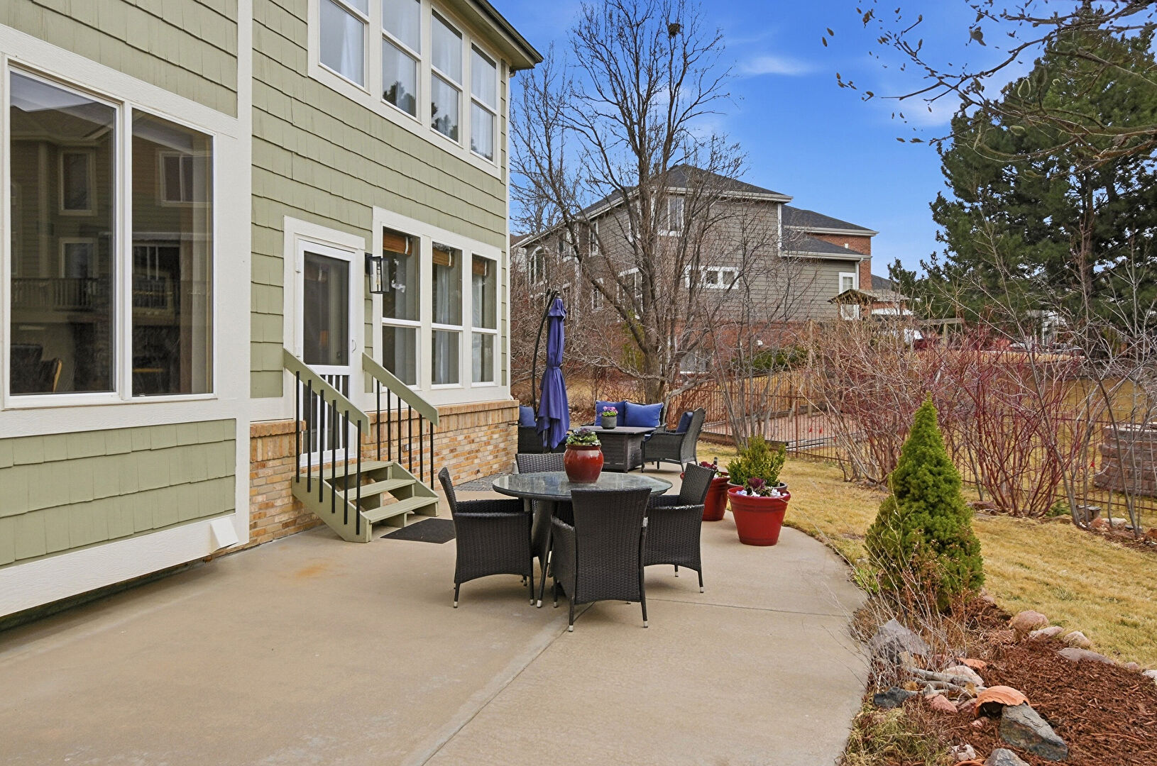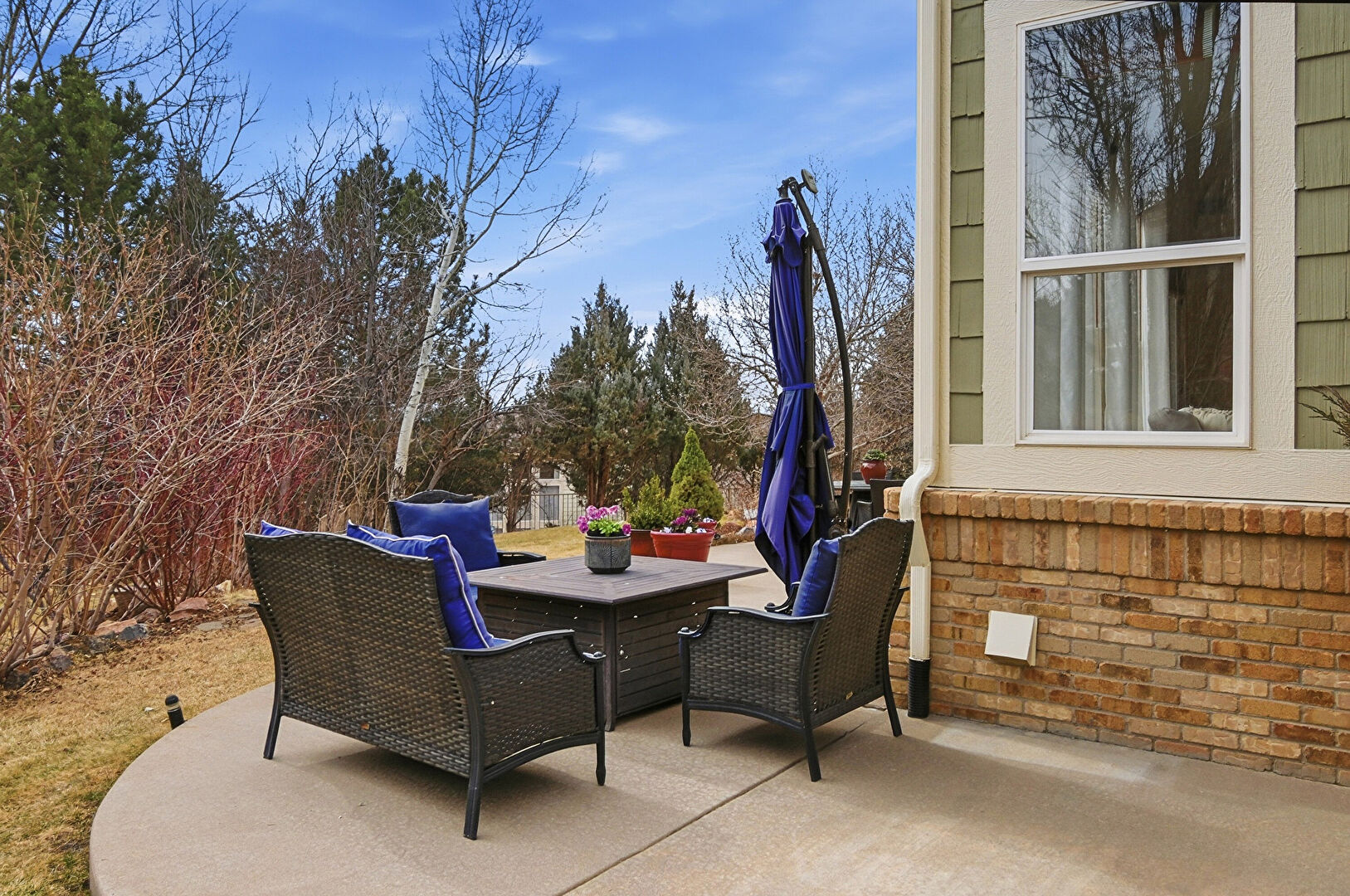 Brick Siding, Concrete Foundation, Downspout, Fence, Grill, Gutters, Horizontal Siding, Lawn, Patio