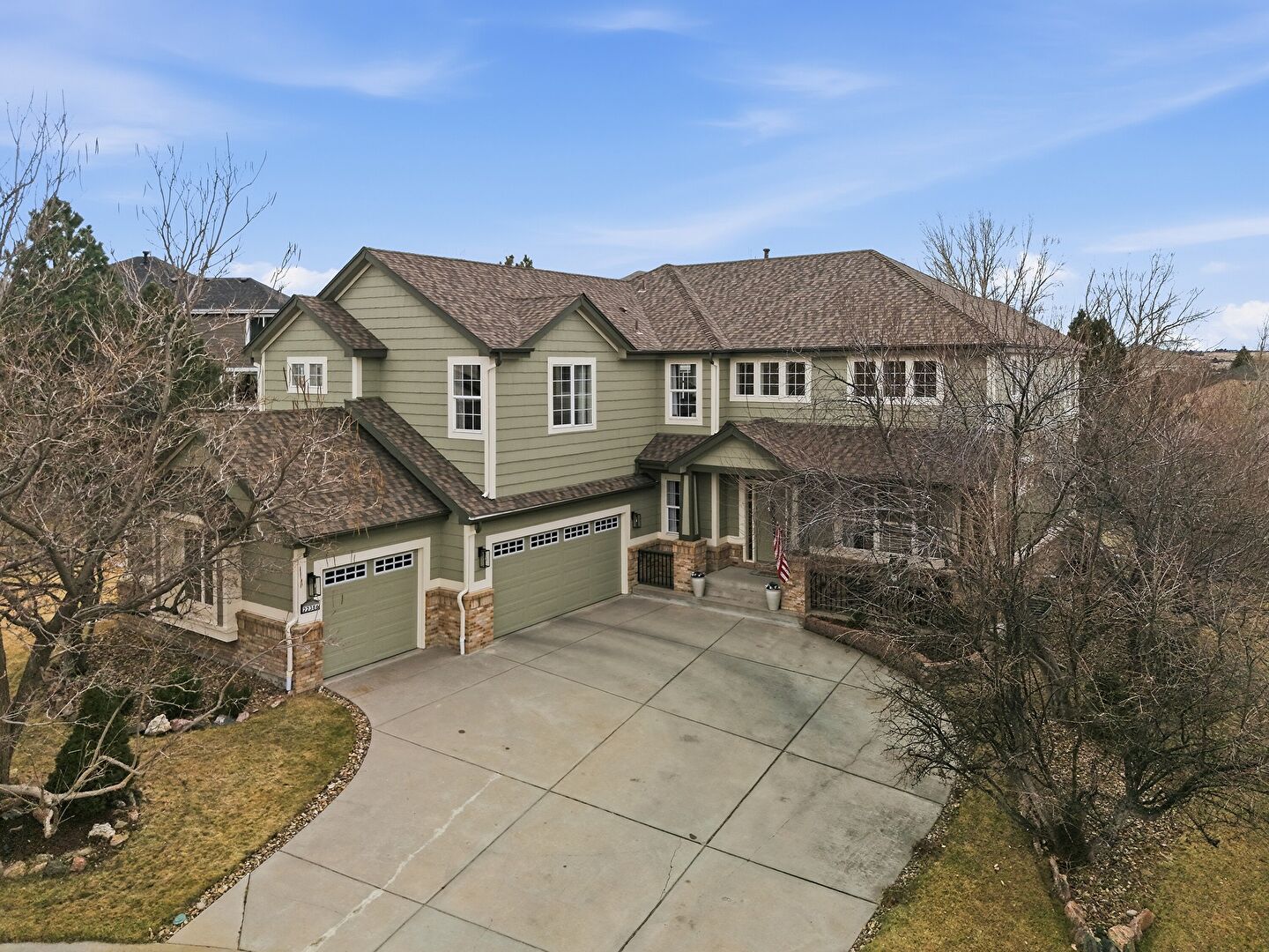 Brick Siding, Built In Garage, Downspout, Driveway, Gutters, Porch, Shingle Roof, Stone Siding, Stoop, Horizontal Siding