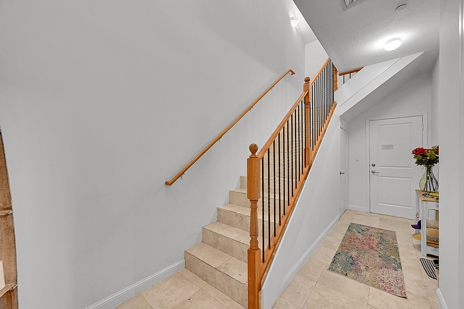 Baseboards Wall, Drywall, Natural Light, Recessed Lighting, Stairs, Textured Ceiling, Tile Floor, Vent, Baseboards Wall, Drywall, Natural Light