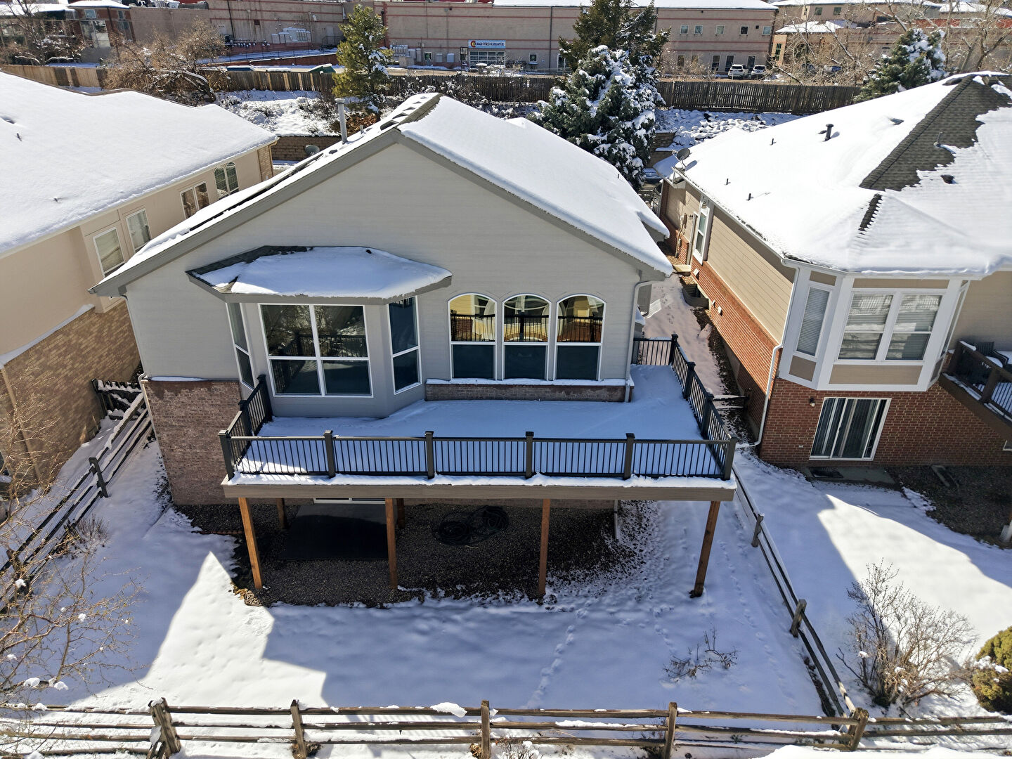 Brick Siding, Deck, Downspout, Fence, Residential View, Horizontal Siding
