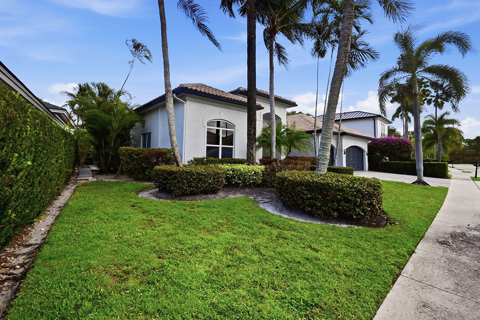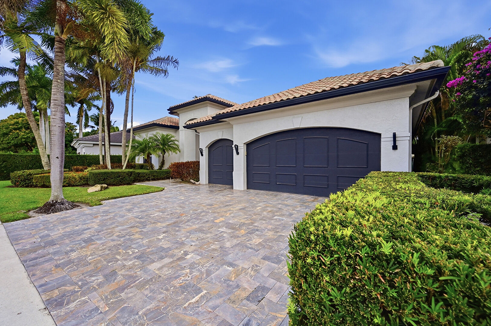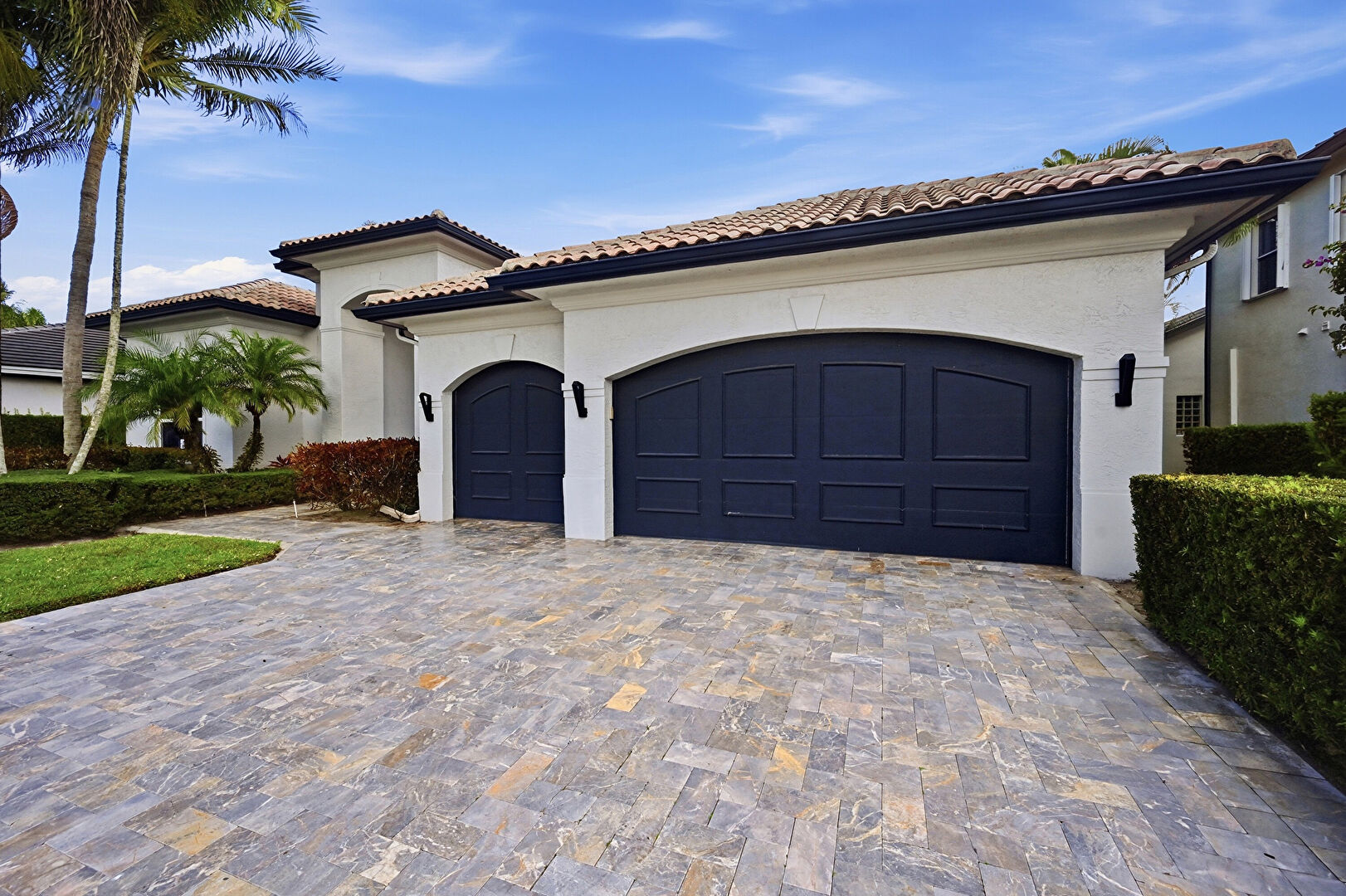 Downspout, Driveway, Garage Door Opener, Gutters, Tile Roof, Drywall, Stucco Siding