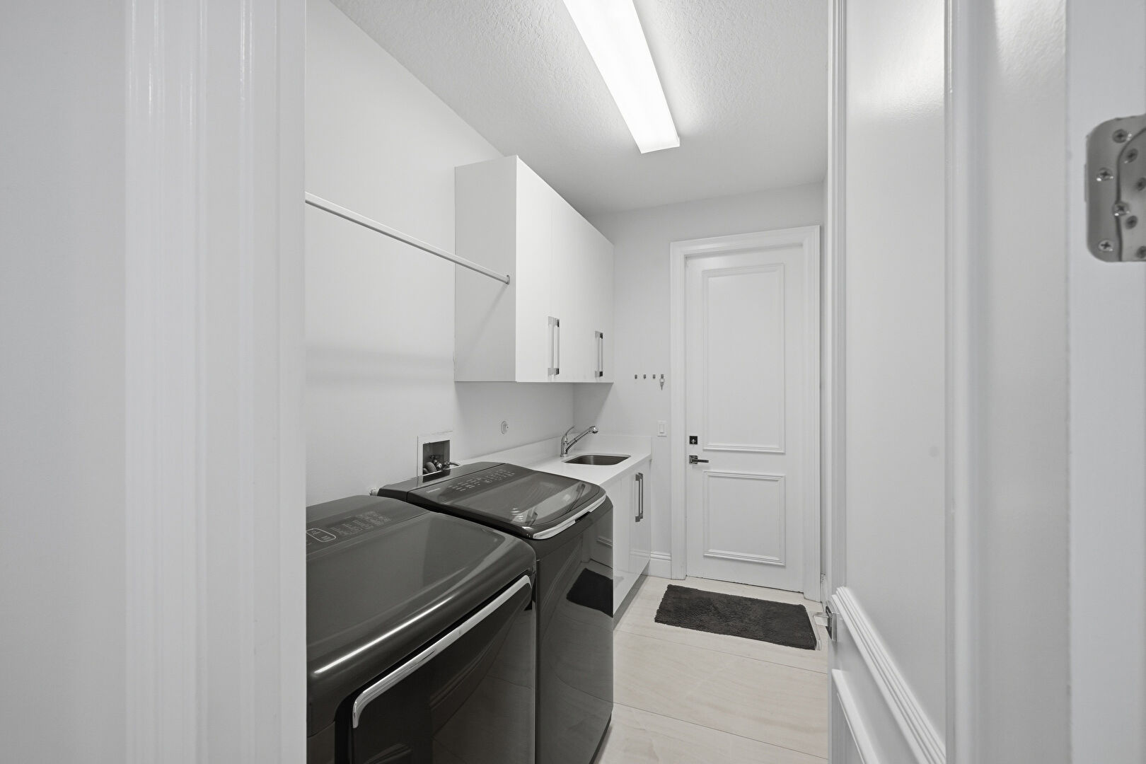 Baseboards Wall, Drywall, Textured Ceiling, Tile Floor, Washer Hookup, Laundry