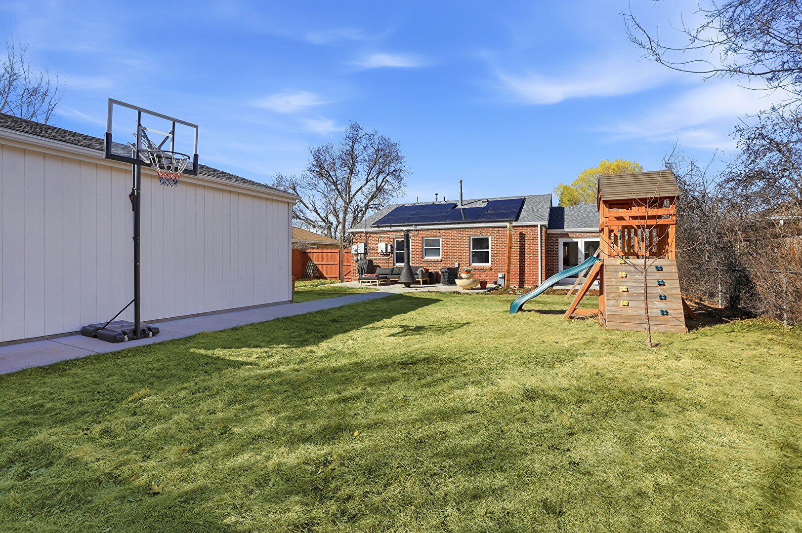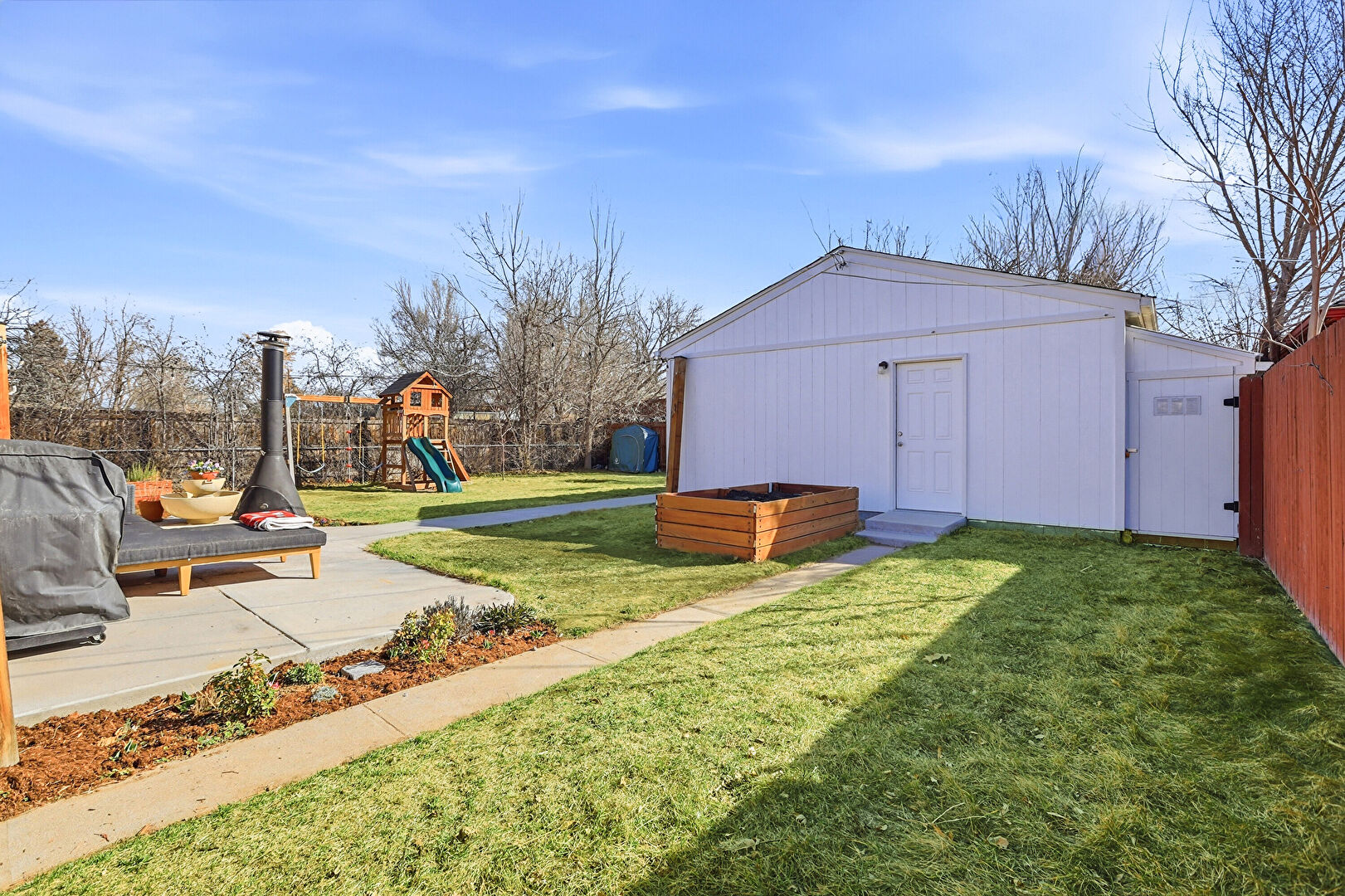 Fence, Garden, Grill, Lawn, Outdoor Structure, Playground, Patio