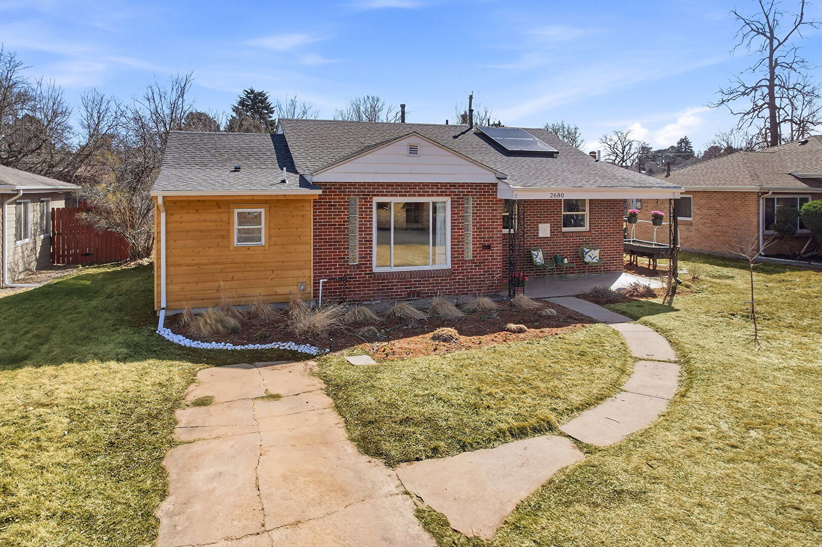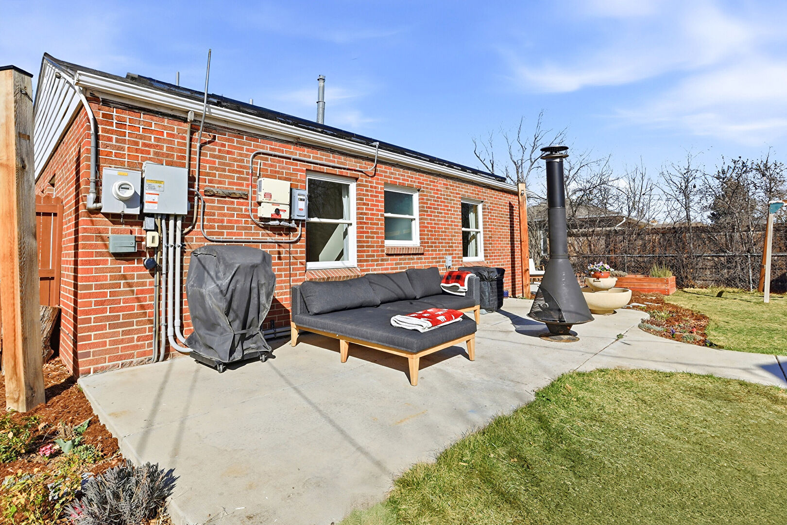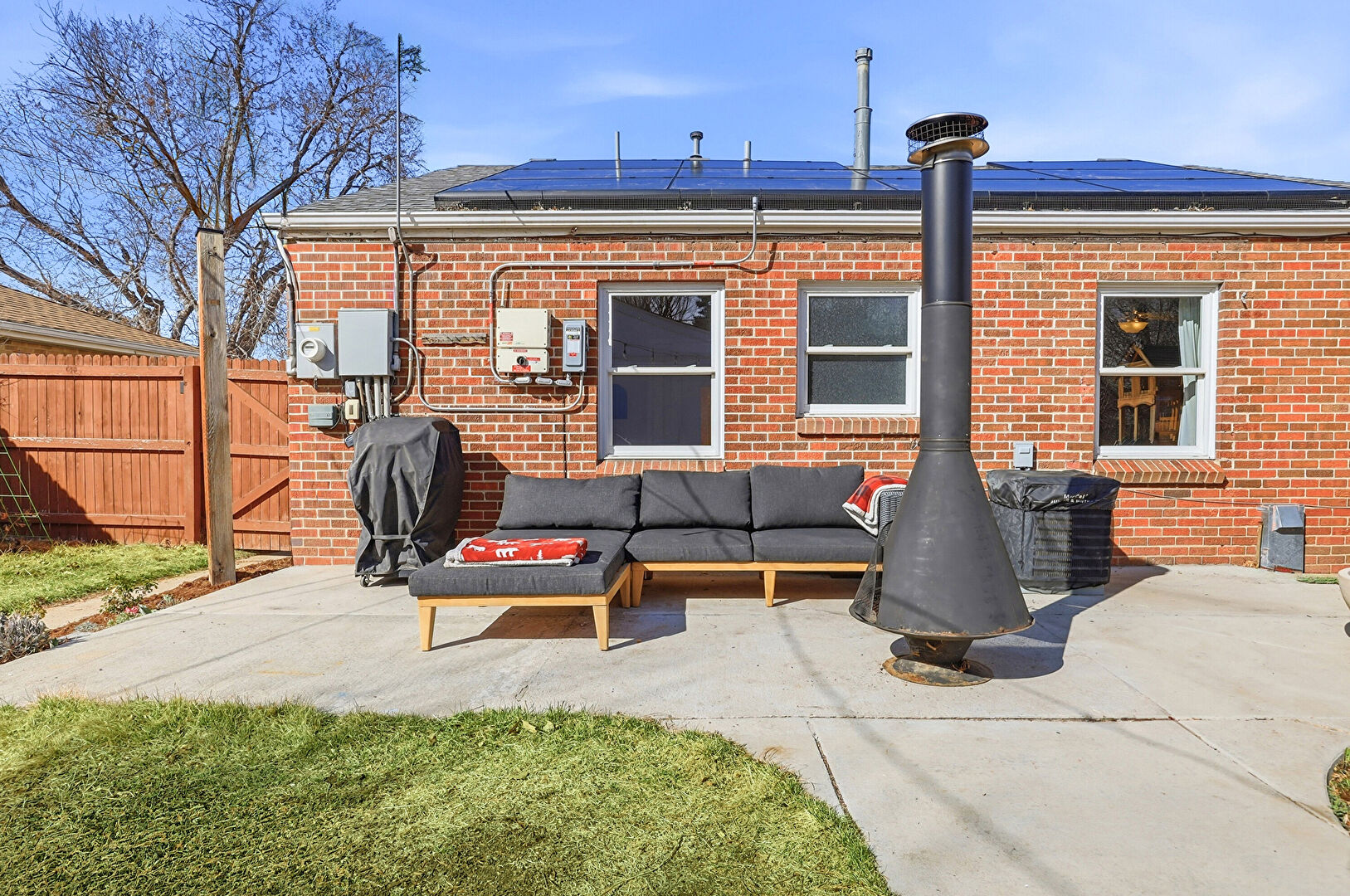 Brick Siding, Central Ac, Concrete Foundation, Downspout, Electric Meter, Fence, Gate, Grill, Gutters, Horizontal Siding, Lawn, Outdoor Living Space, Outdoor Structure, Patio, Playground, Satellite Dish, Shingle Roof, Solar Panels, Solar Power Inverter, Vertical Siding, Brick Siding, Fence, Solar Panels