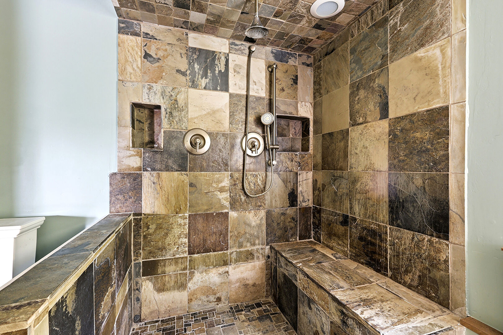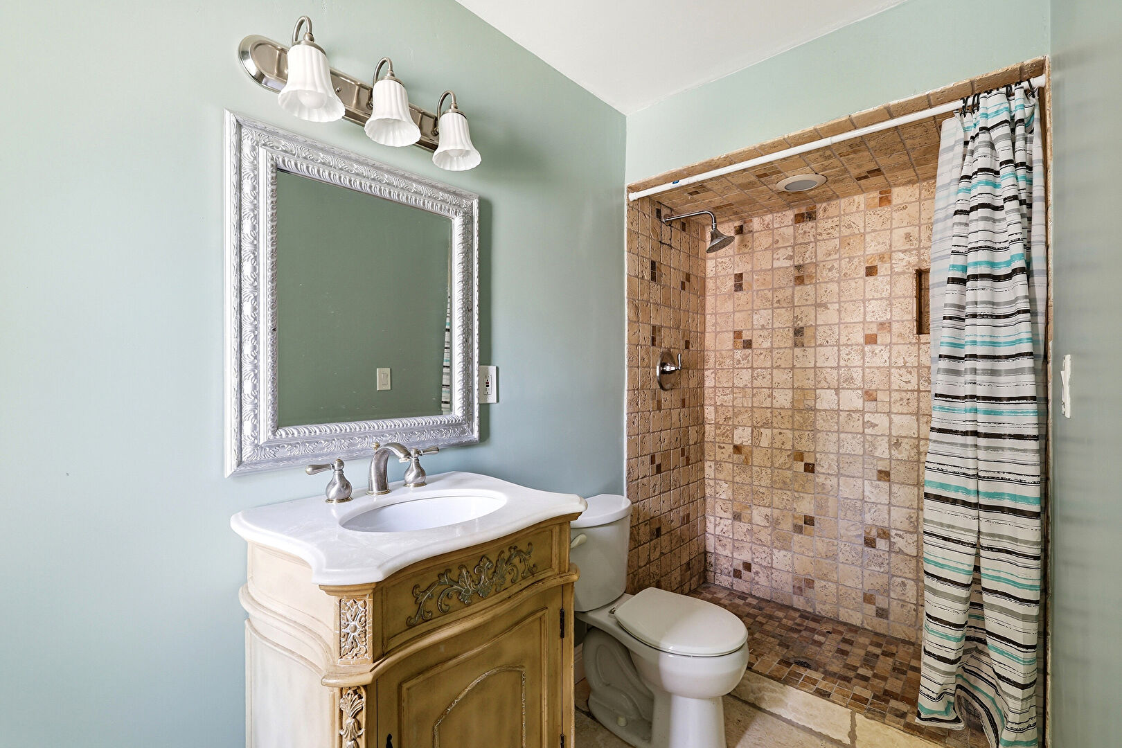 Drywall, Full Bathroom, Natural Light, Stone Finish Floor, Vanity, Baseboards Wall, Vanity
