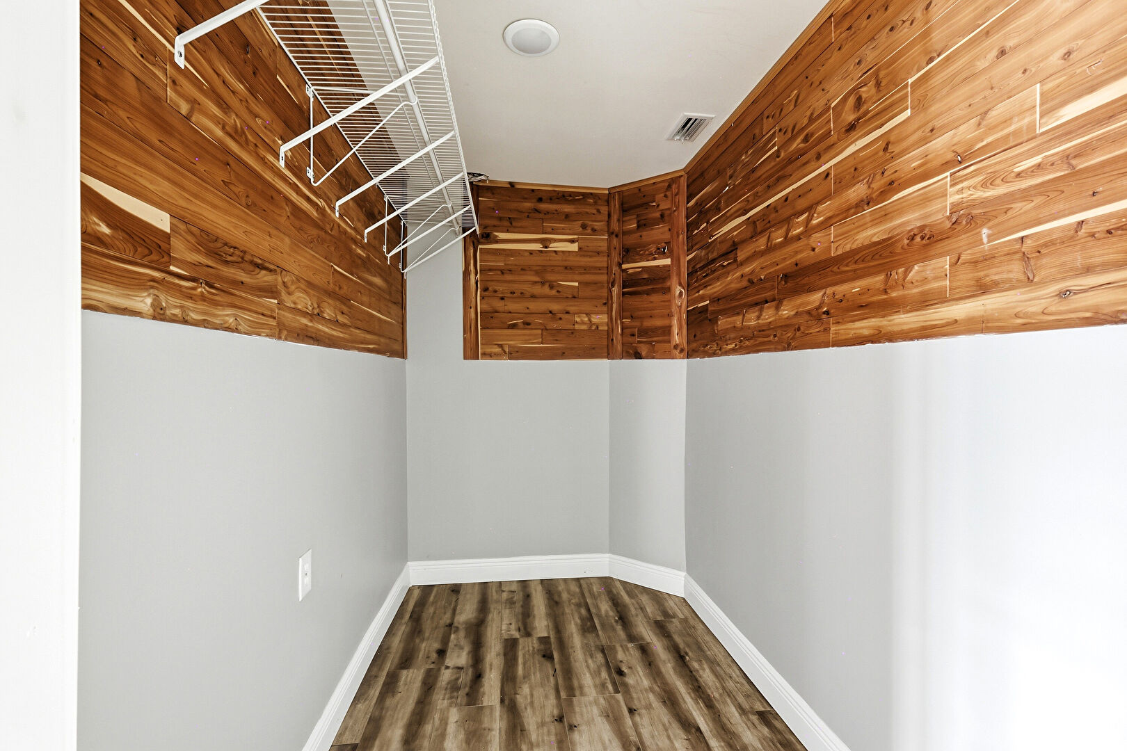 Ceiling Fan, Closet, Drywall, Natural Light, Vent, Wood Finish Floor, Baseboards Wall