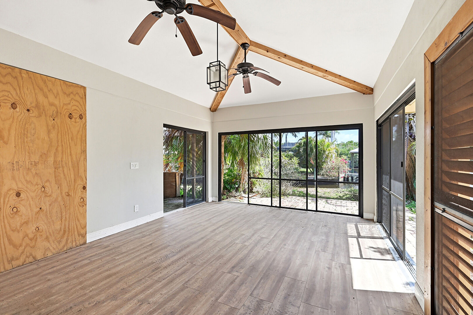 Beamed Ceiling, Ceiling Fan, Closet, Drywall, High Ceiling, Natural Light, Patio, Sunroom, Vaulted Ceiling, Wood Finish Floor, Baseboards Wall, Pergola
