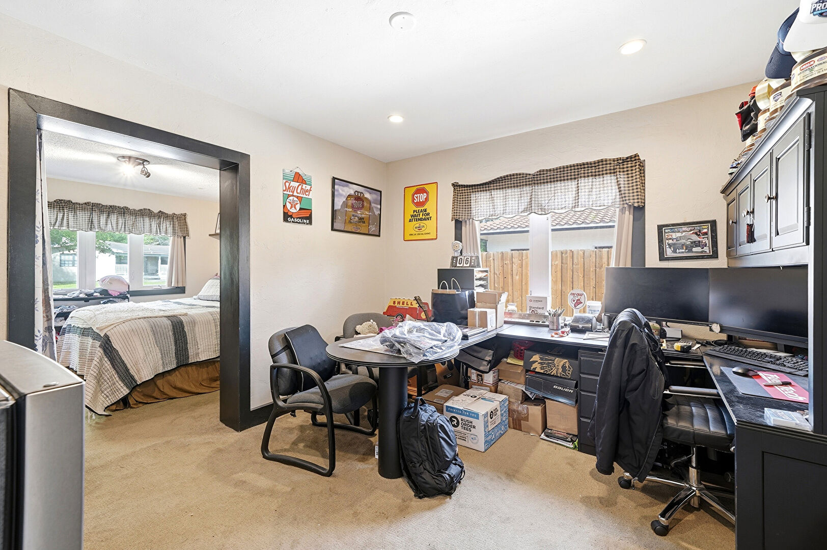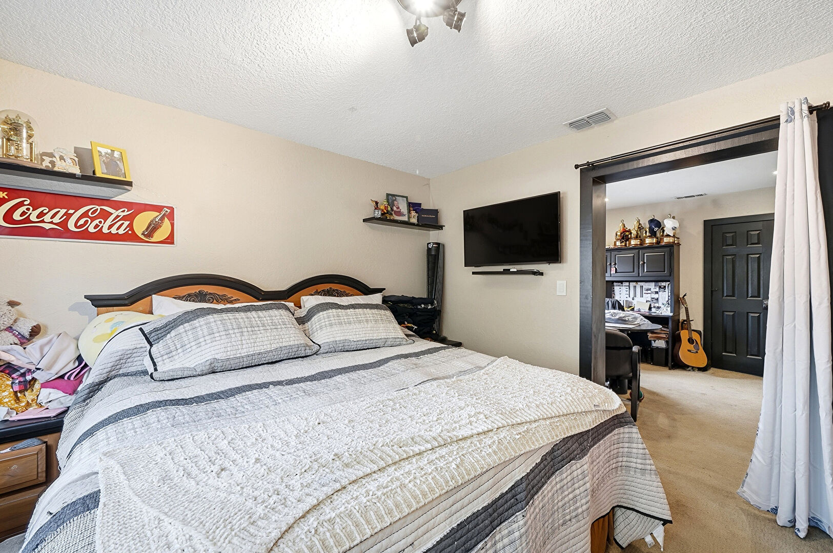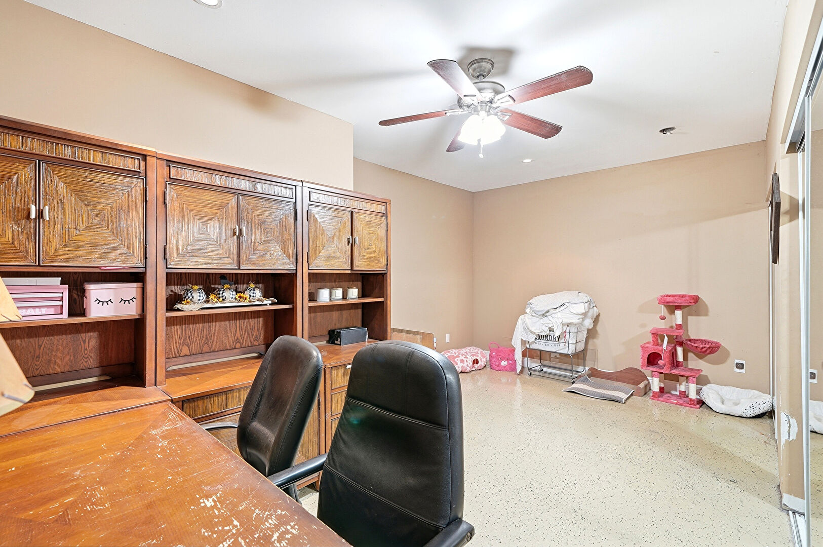 Aggregate Floor, Carpet, Ceiling Fan, Drywall, Natural Light, Office Area, Textured Ceiling, Two Closets, Vent, Drywall, Textured Ceiling, Textured Wall