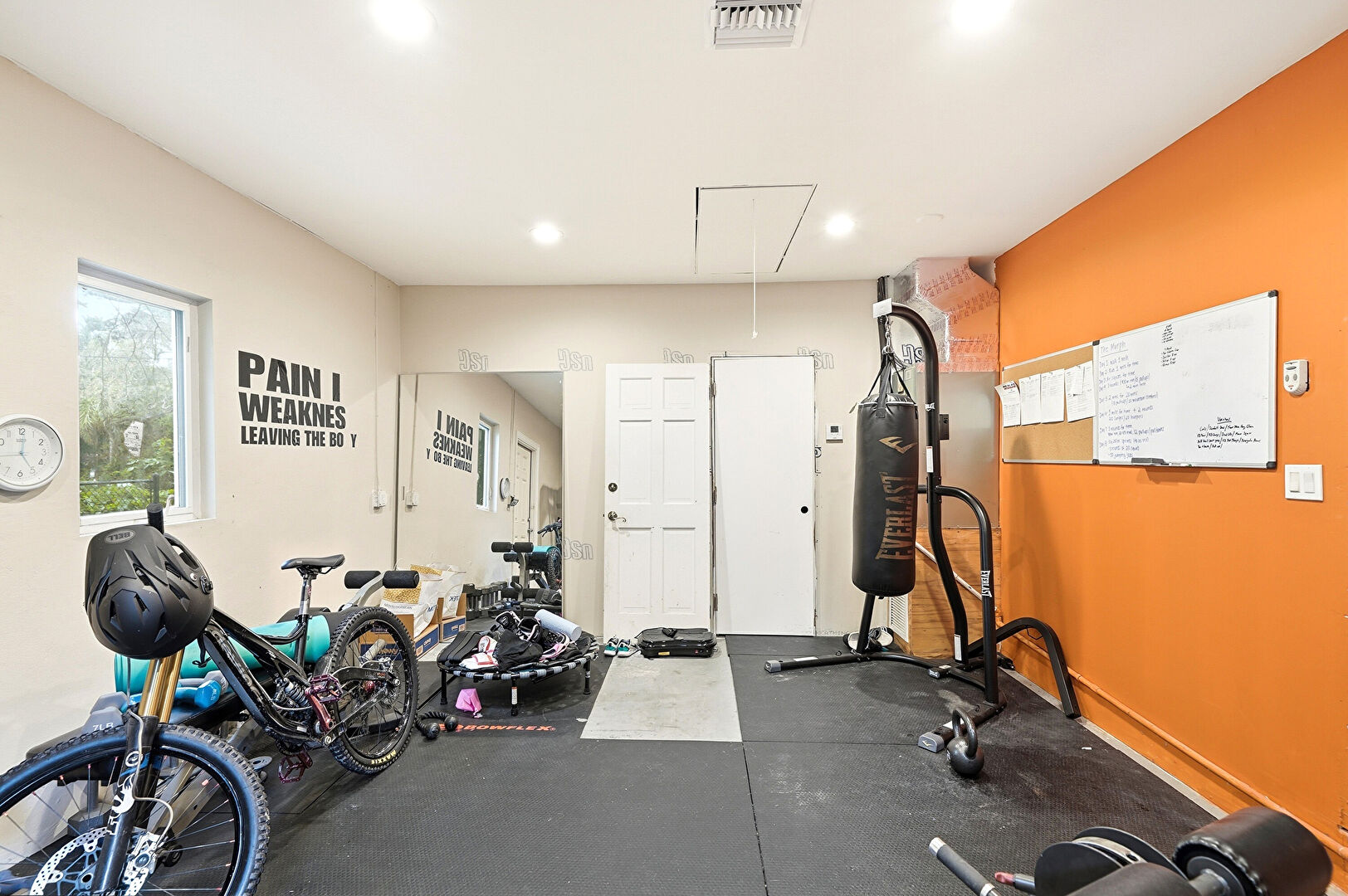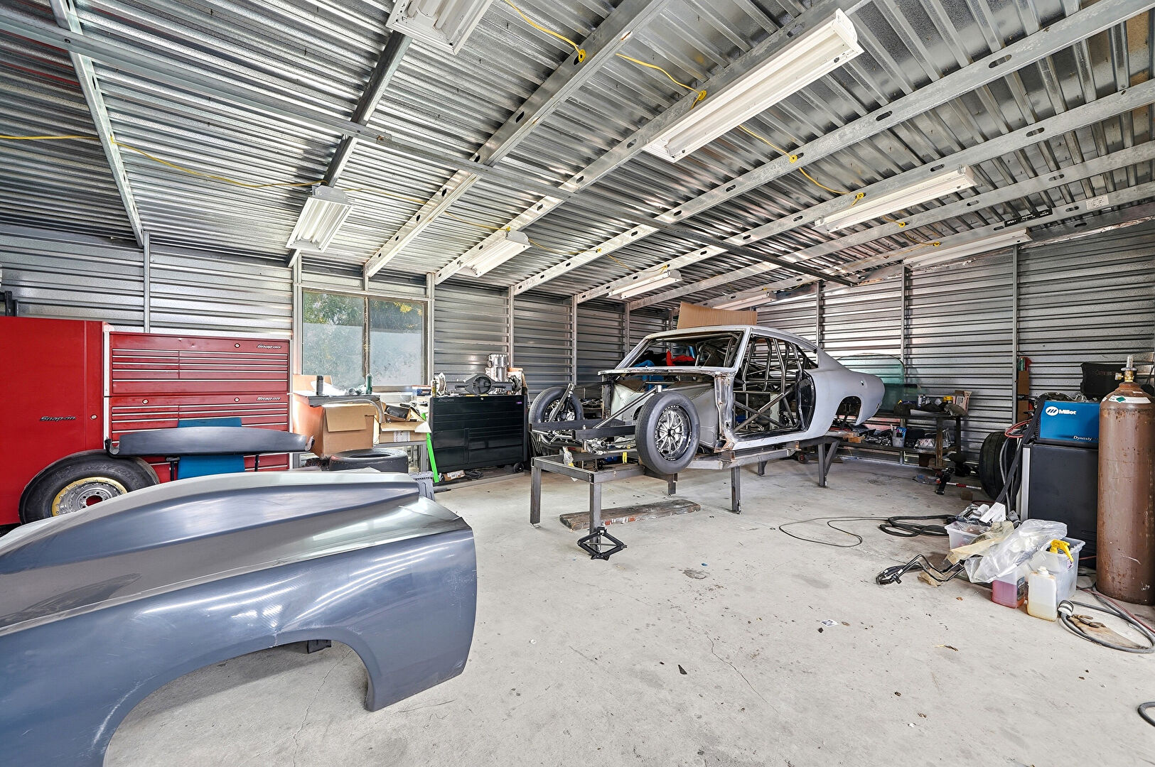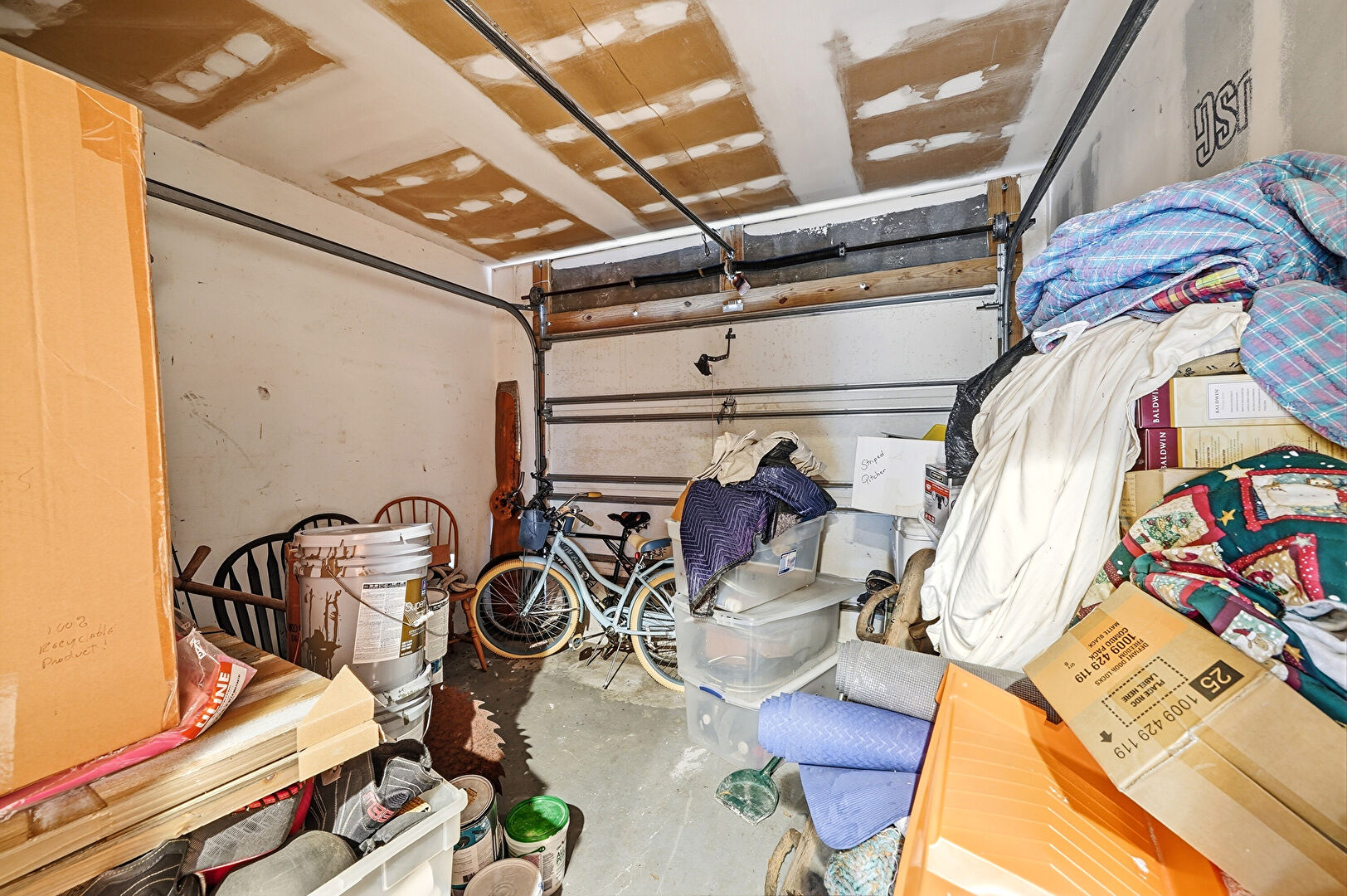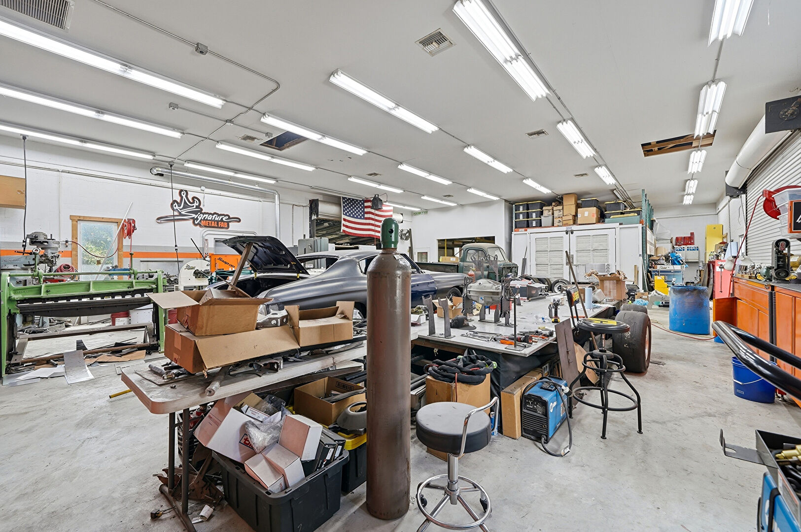 Driveway, Garage, Metal Wall, Natural Light, Vent, Workshop, Garage, Parking Pad, Vent, Water Softener, Workshop