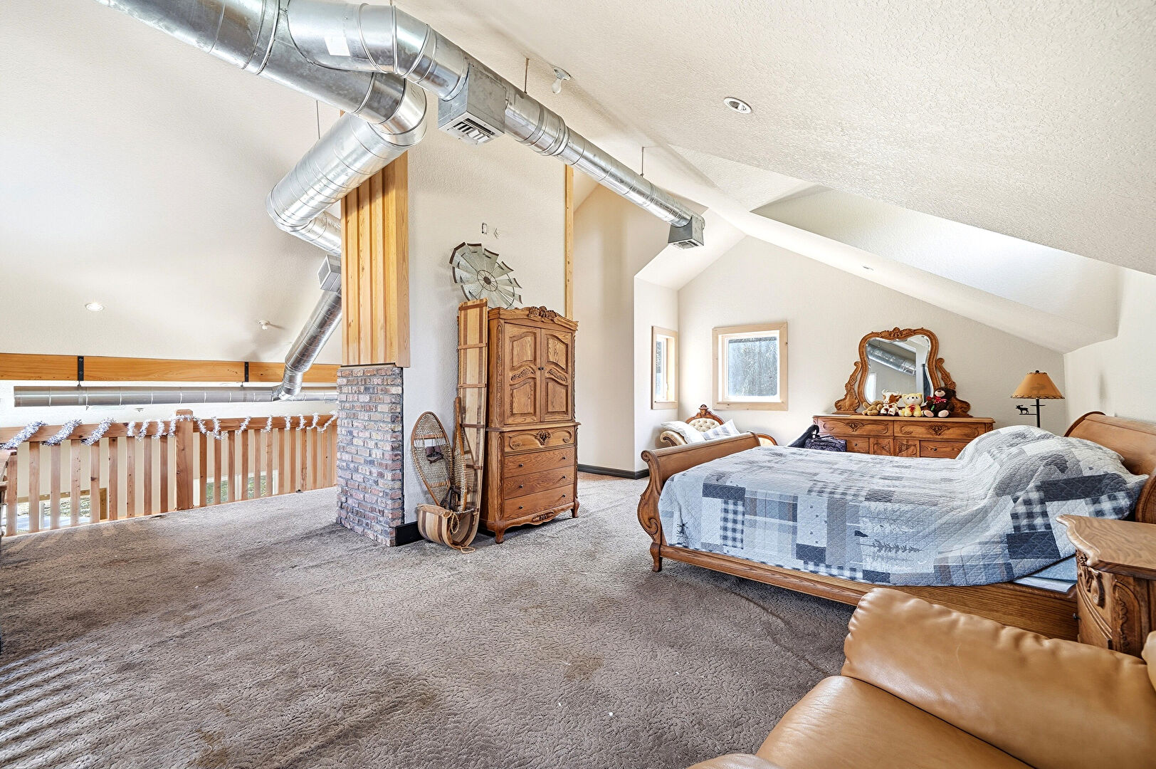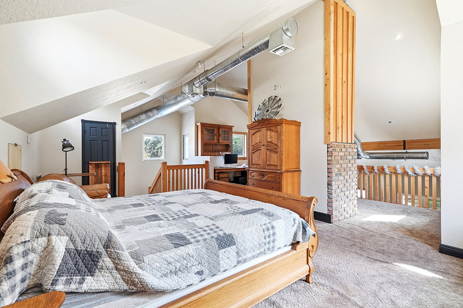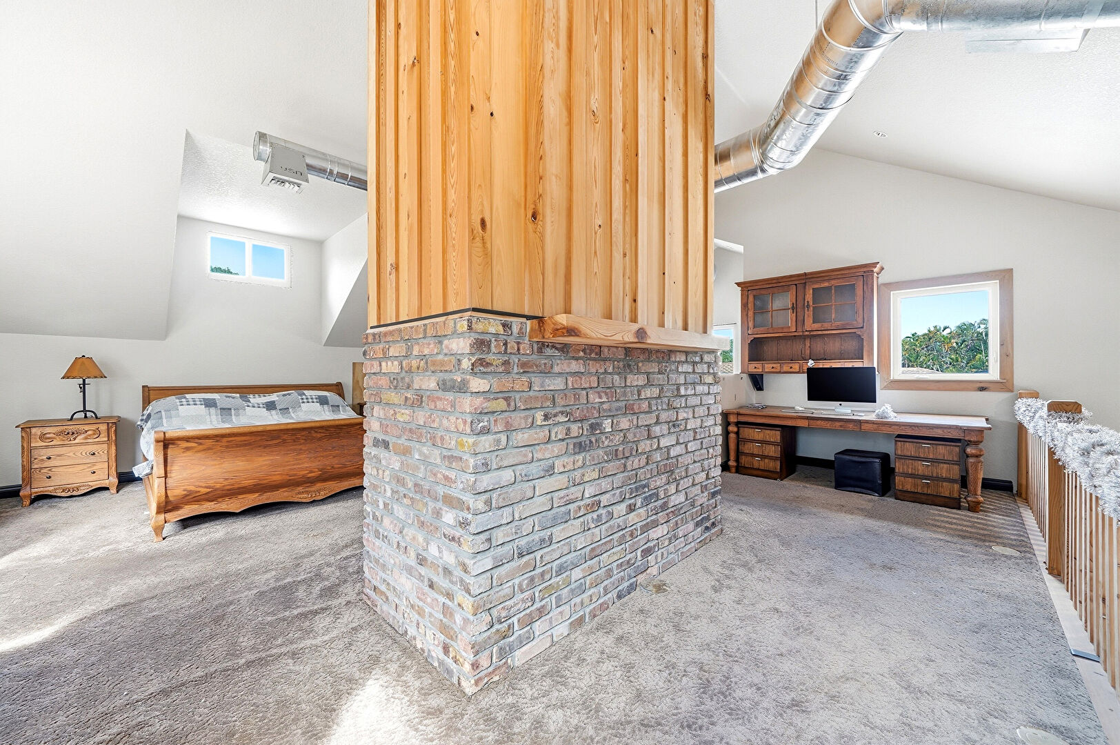 Baseboards Wall, Bonus Room, Built In Desk, Carpet, Cathedral Ceiling, Drywall, High Ceiling, Natural Light, Office Area, Textured Ceiling, Vaulted Ceiling, Vent, Carpet, Vaulted Ceiling, Vent