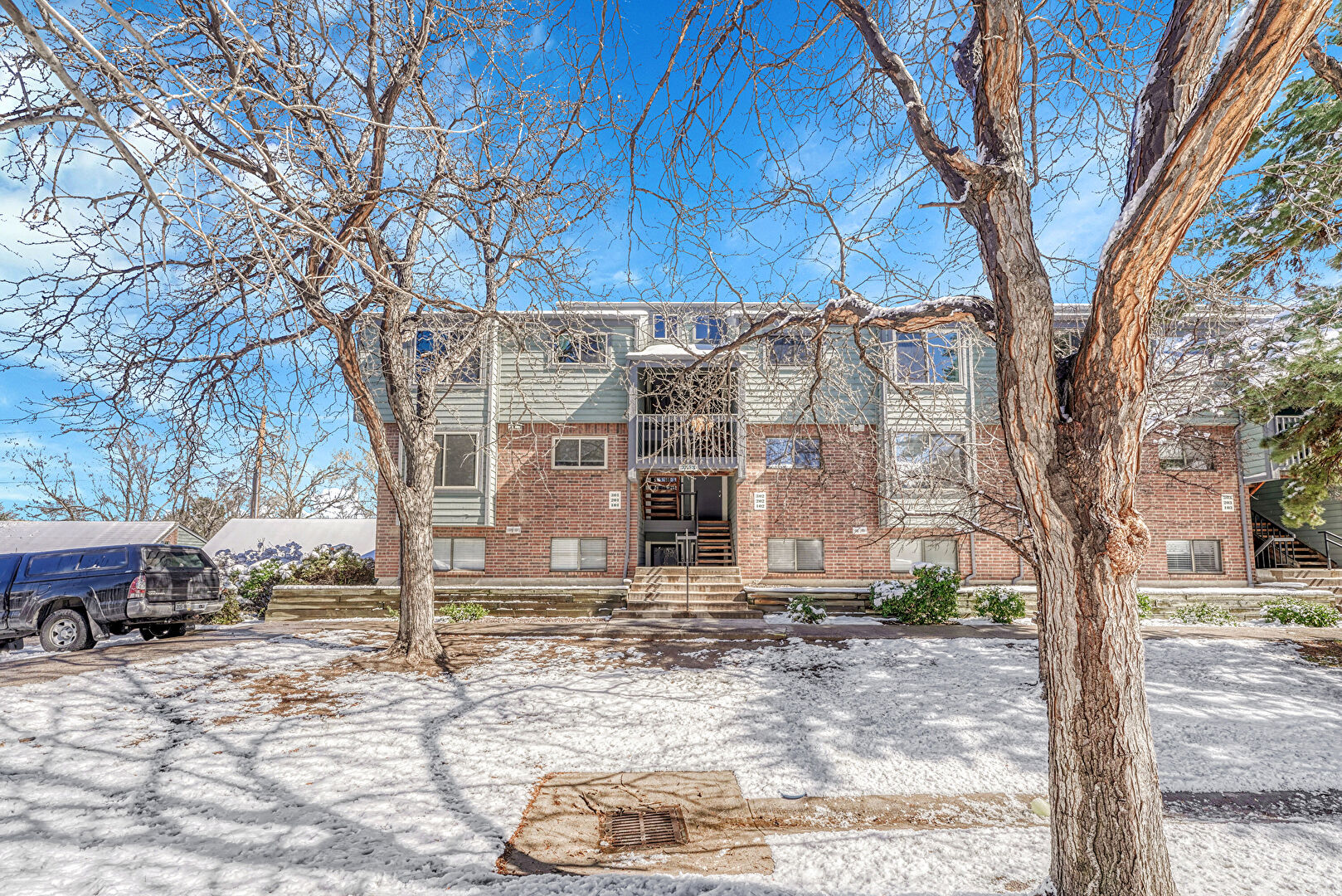 Apartment Complex View, Balcony, Brick Siding, Downspout, Horizontal Siding, Stoop, Apartment Complex View, Stairs