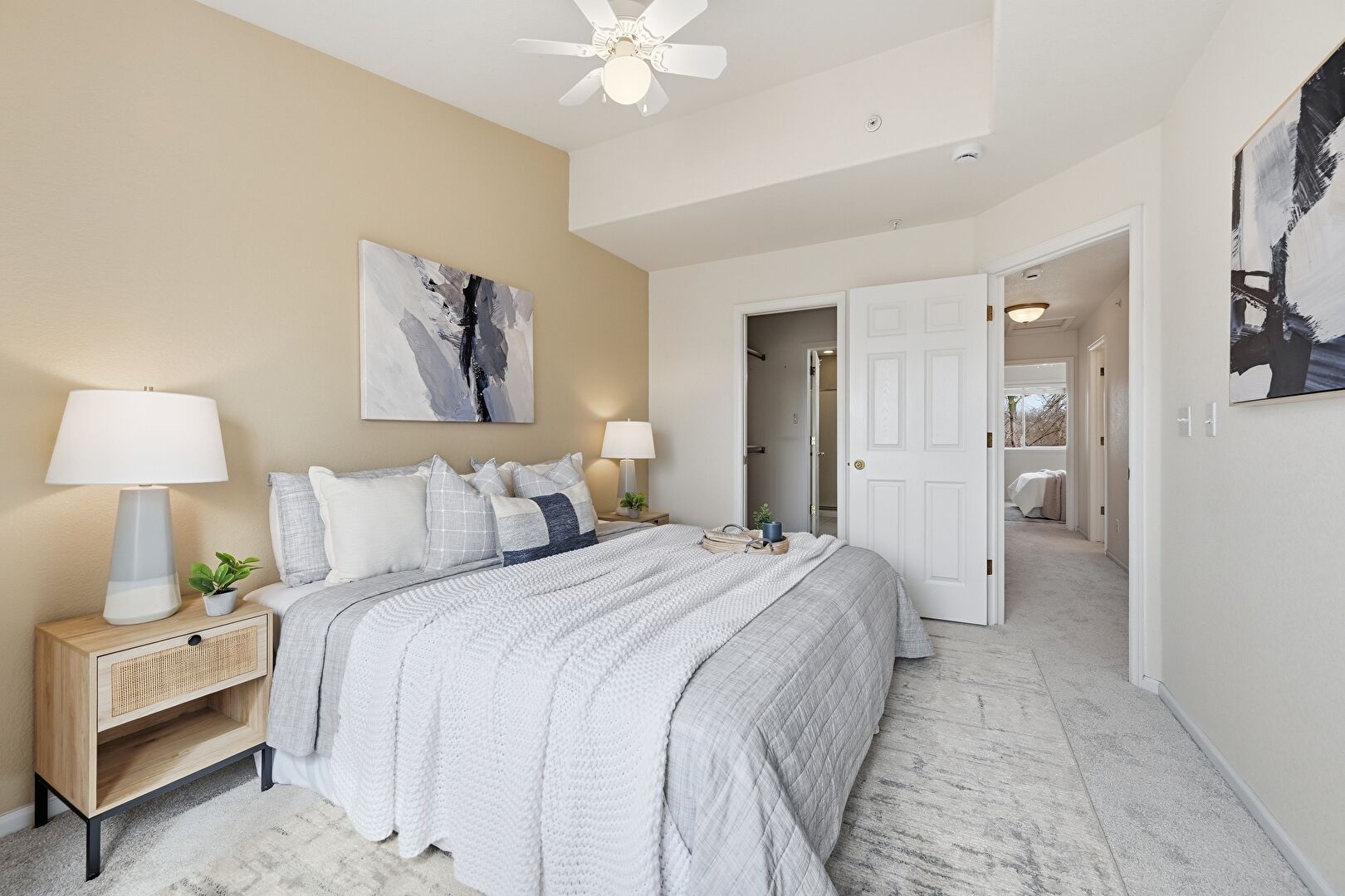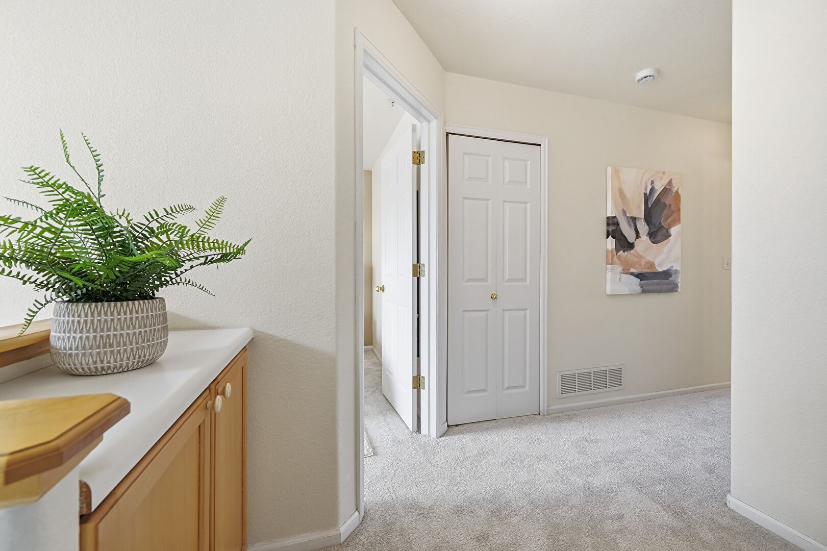 Baseboards Wall, Carpet, Ceiling Fan, Closet, Drywall, Natural Light, Smoke Carbon Monoxide Detector, Vent, Baseboards Wall, Carpet