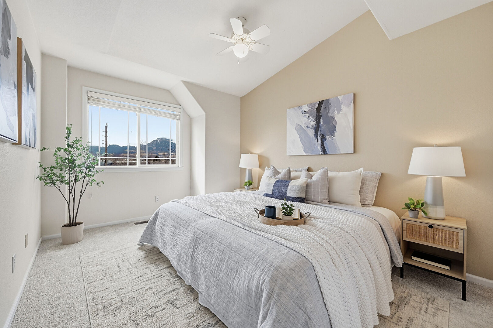 Baseboards Wall, Carpet, Ceiling Fan, Drywall, Ensuite Bathroom, Mountain View, Natural Light, Smoke Carbon Monoxide Detector, Vaulted Ceiling, Baseboards Wall, Ceiling Fan, Drywall