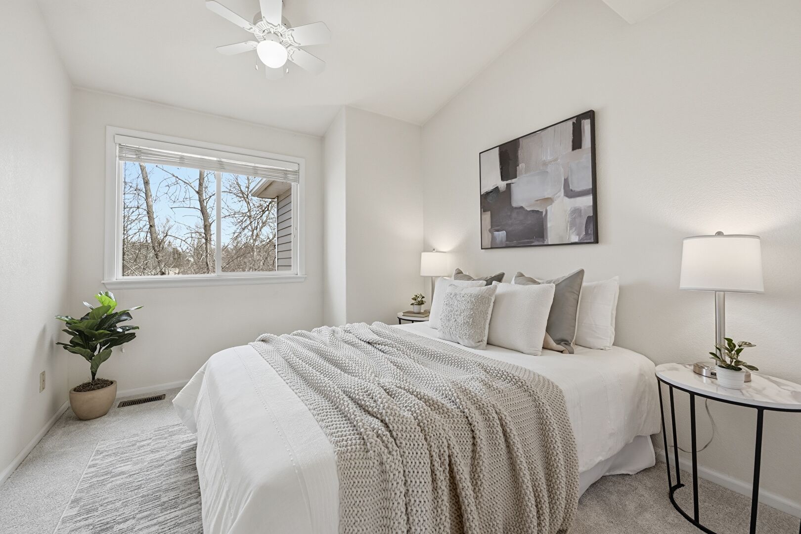 Baseboards Wall, Carpet, Ceiling Fan, Drywall, Smoke Carbon Monoxide Detector, Vaulted Ceiling, Vent, Closet, Natural Light