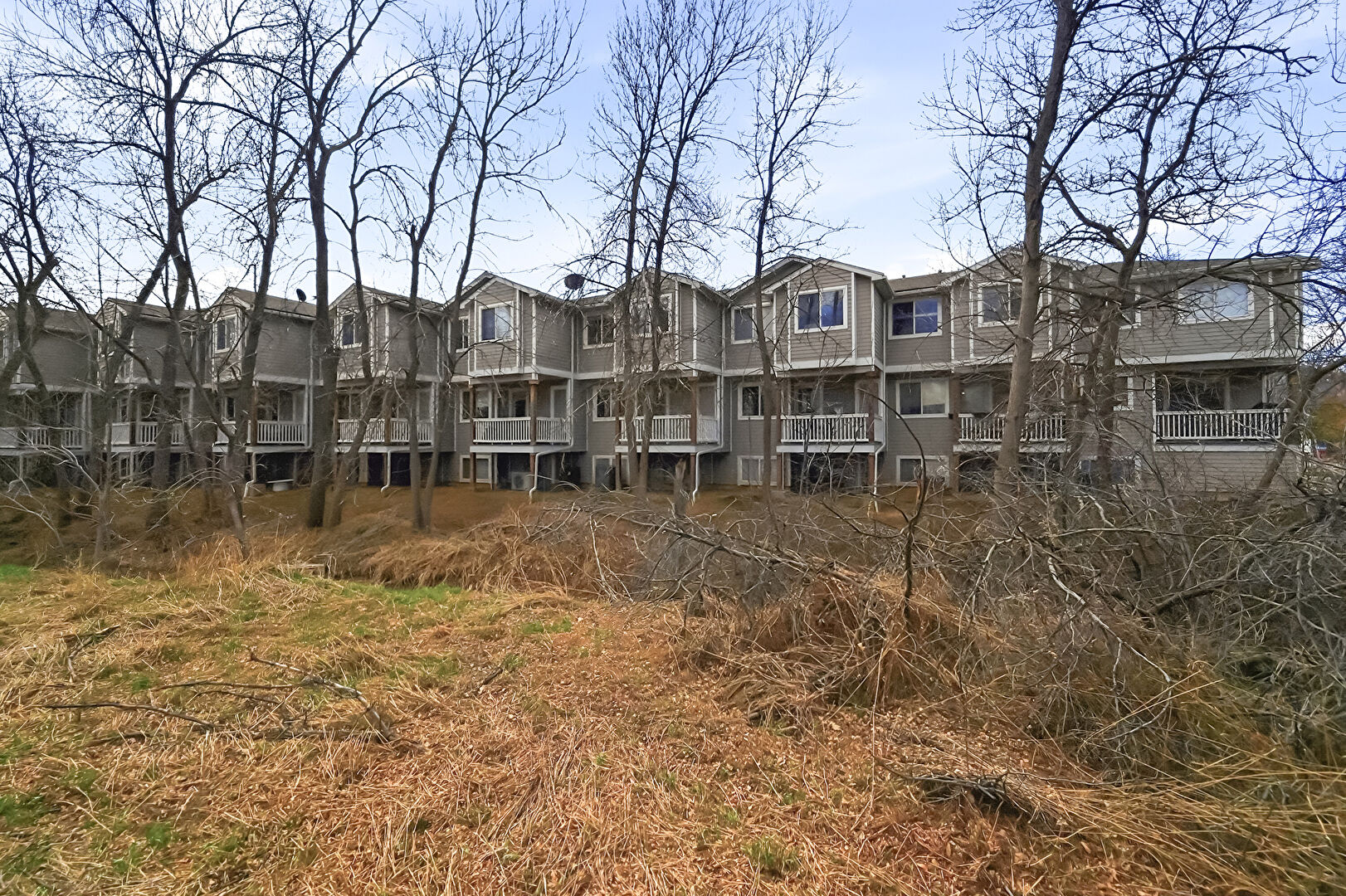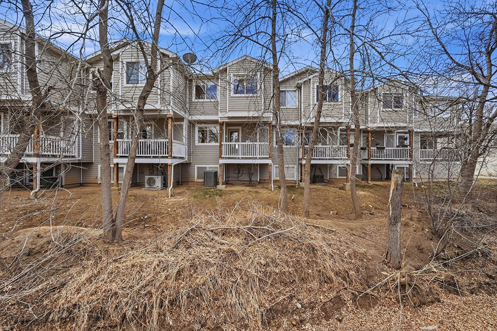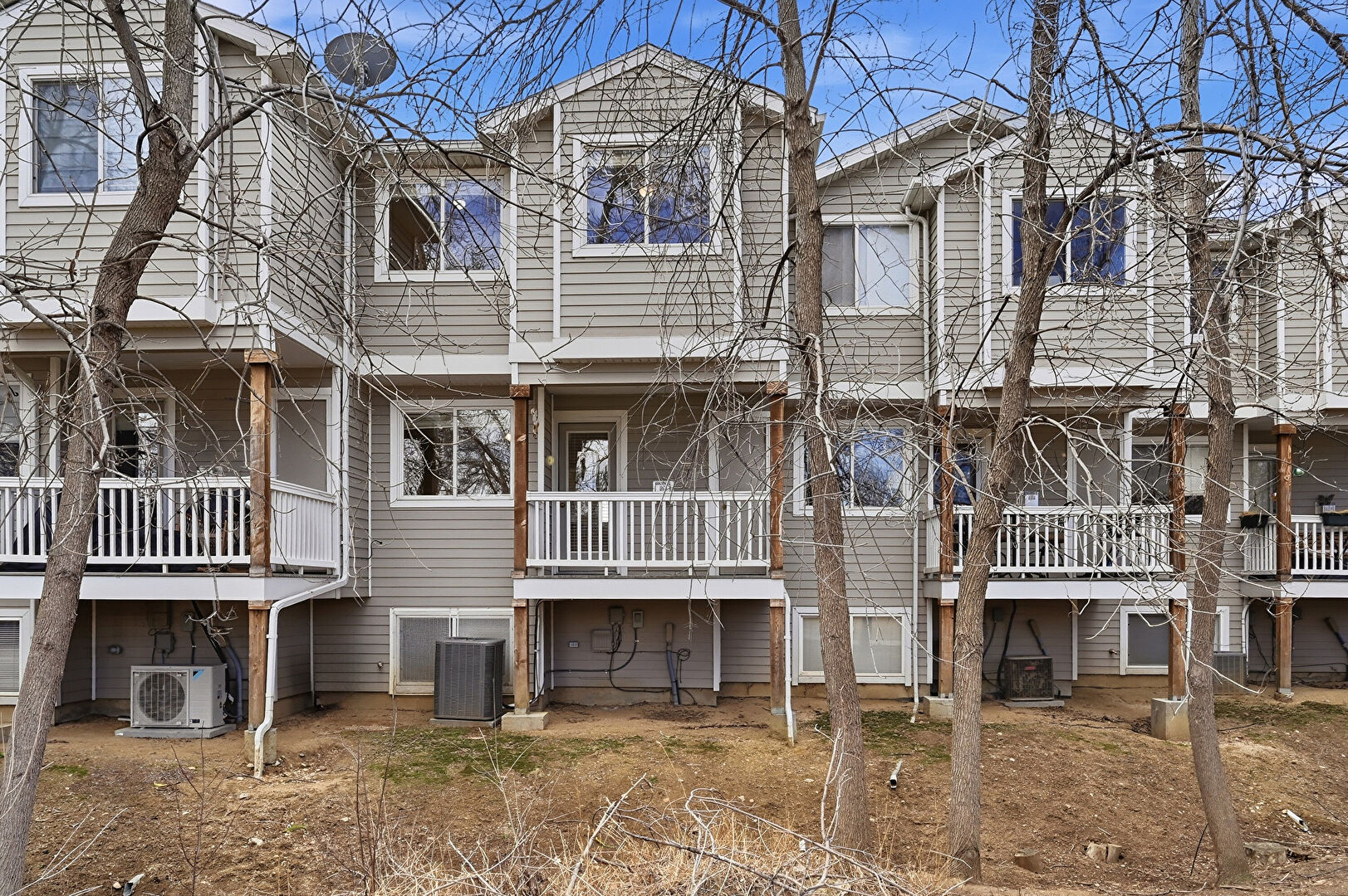 Balcony, Central Ac, Concrete Foundation, Deck, Downspout, Gutters, Horizontal Siding, Satellite Dish, Split Ac Unit, Apartment Complex View, Downspout