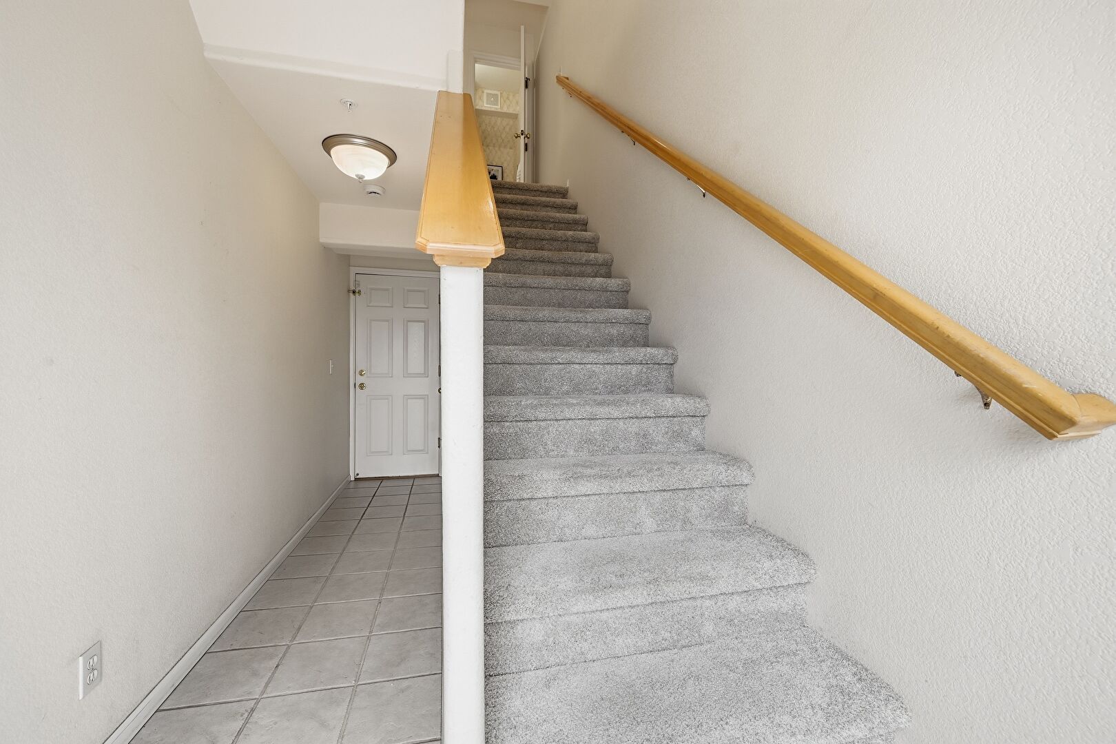 Baseboards Wall, Stairs, Textured Wall, Tile Floor