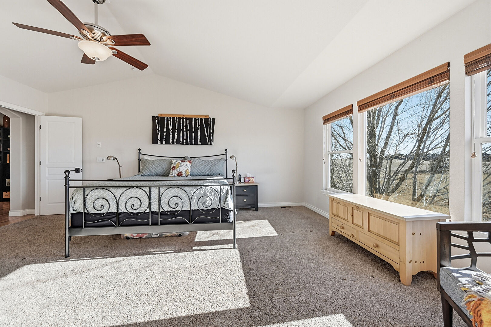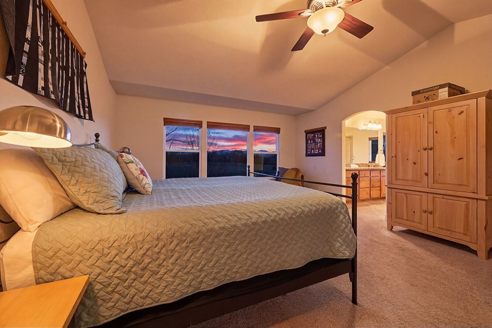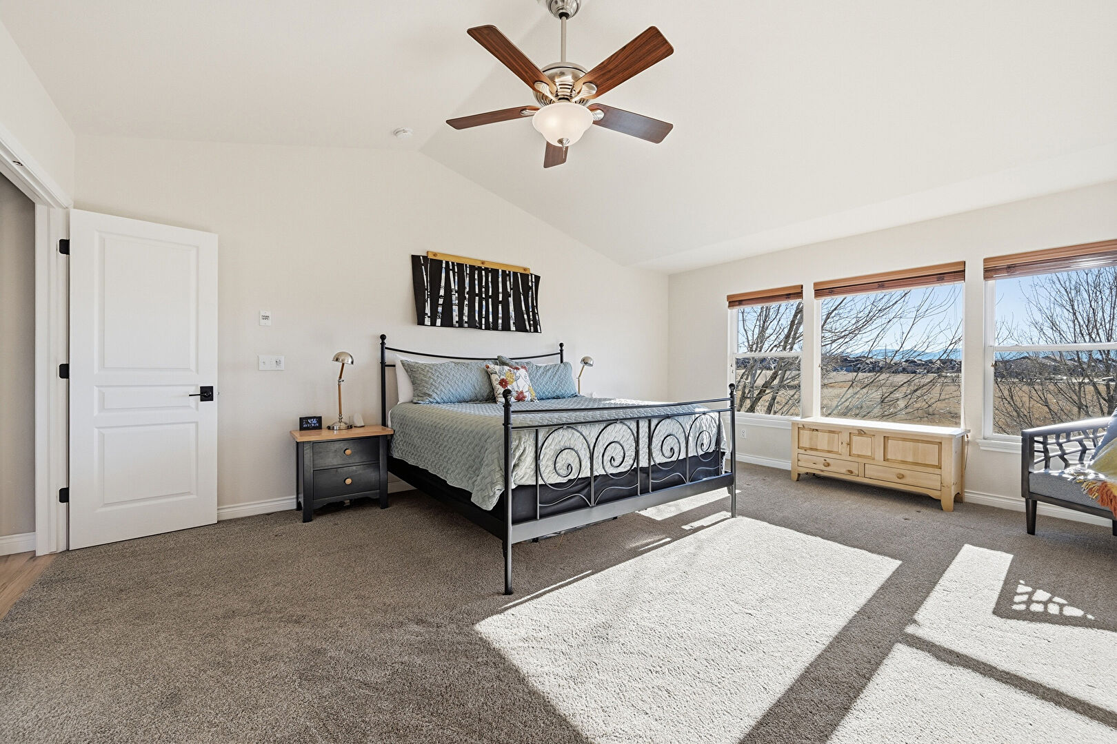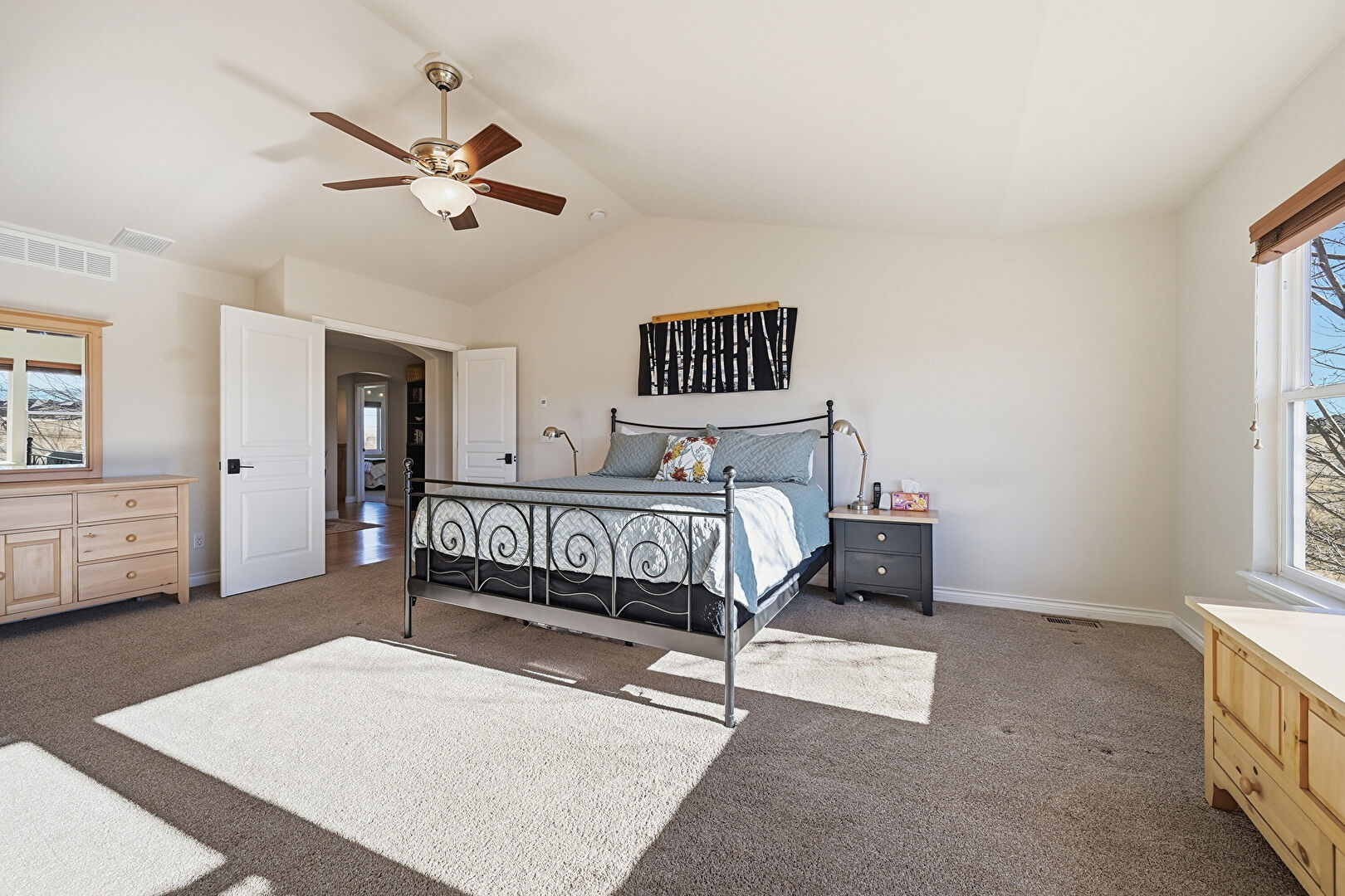 Arched Walkways, Baseboards Wall, Carpet, Cathedral Ceiling, Ceiling Fan, Drywall, Ensuite Bathroom, High Ceiling, Natural Light, Vaulted Ceiling, Vent, Arched Walkways, Baseboards Wall, Drywall, High Ceiling, Vent