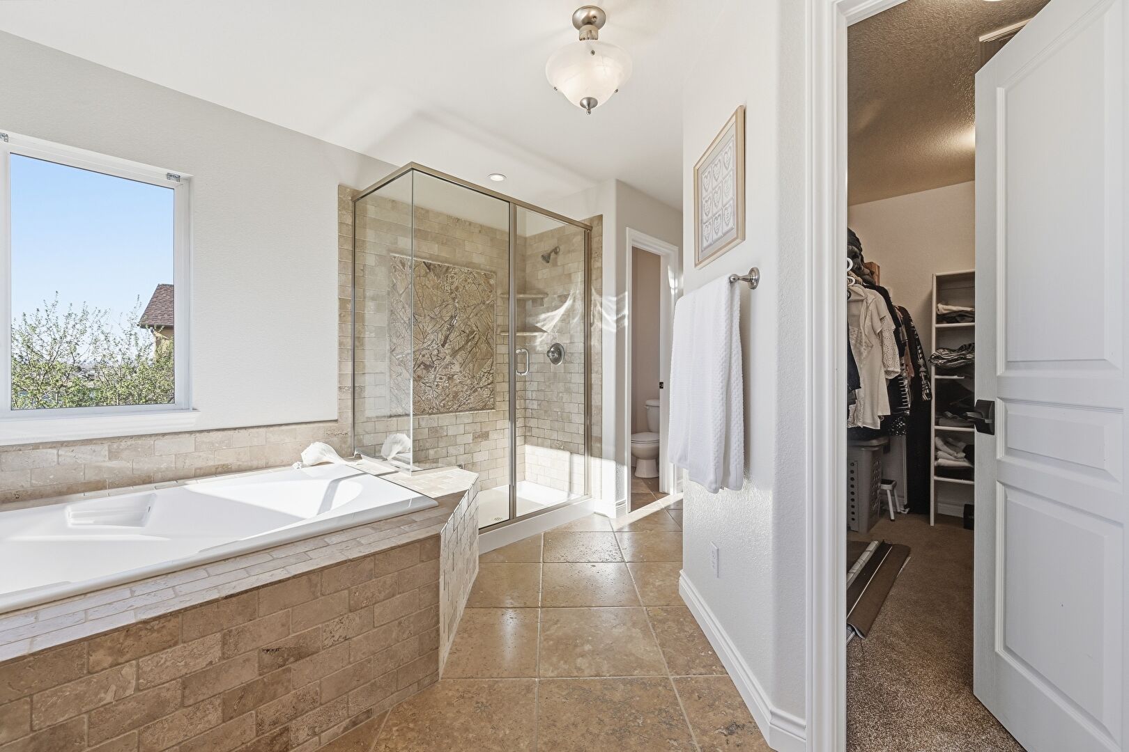 Baseboards Wall, Carpet, Double Vanity, Drywall, Full Bathroom, Natural Light, Recessed Lighting, Stone Finish Floor, Tile Floor, Vanity, Vent, Walk In Closet, Water Closet, Drywall, Full Bathroom, Natural Light, Tile Floor