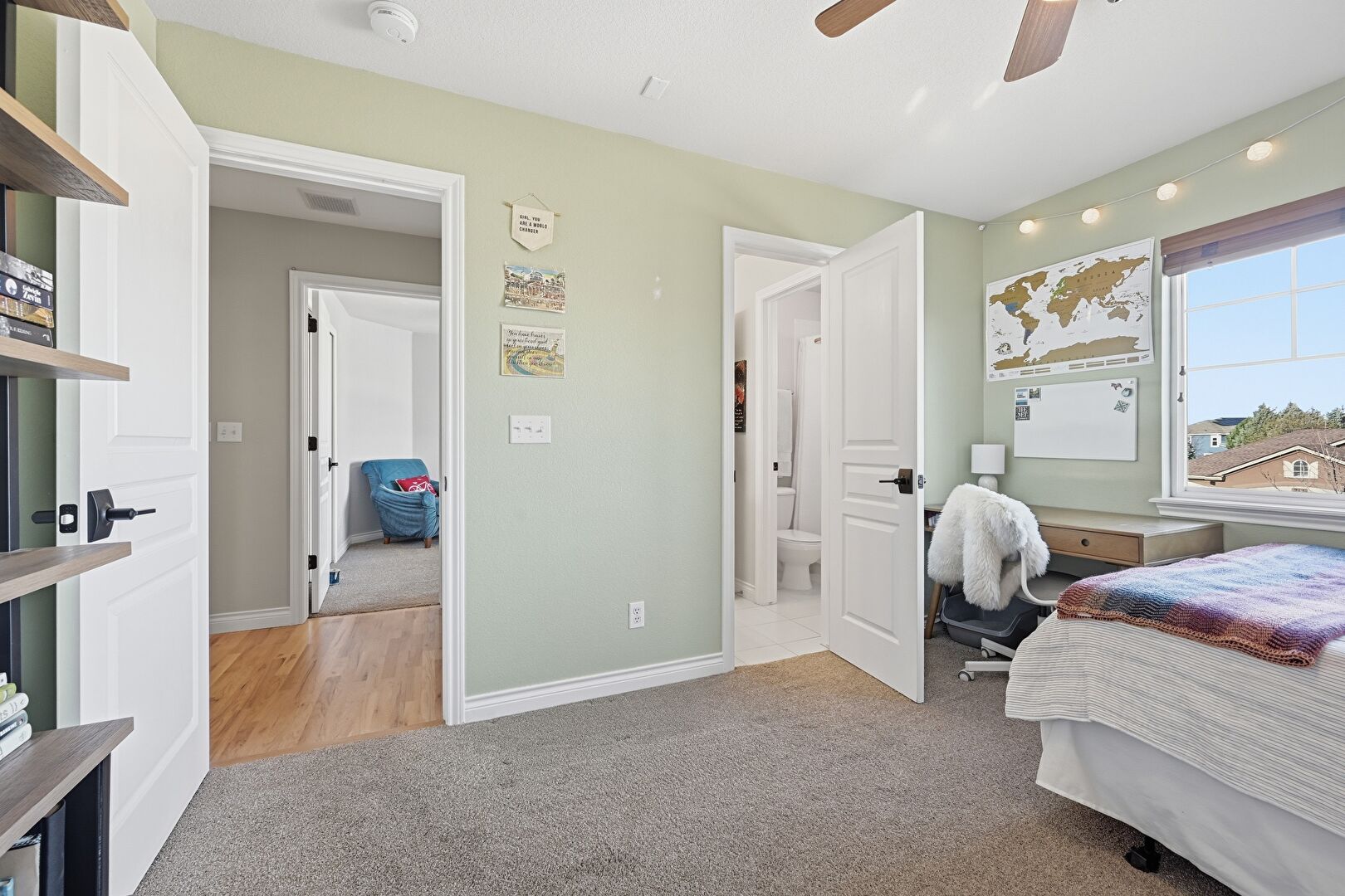 Carpet, Ceiling Fan, Drywall, Ensuite Bathroom, Natural Light, Smoke Carbon Monoxide Detector, Vent, Baseboards Wall, Drywall
