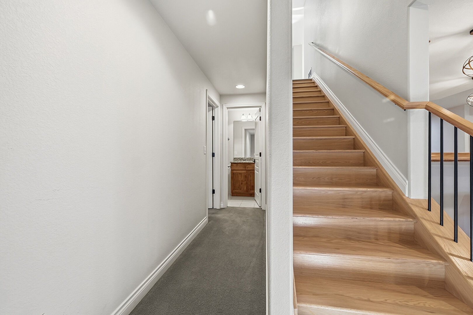 Baseboards Wall, Drywall, High Ceiling, Natural Light, Notable Chandelier, Recessed Lighting, Stairs, Wood Finish Floor, Carpet, Drywall, Natural Light