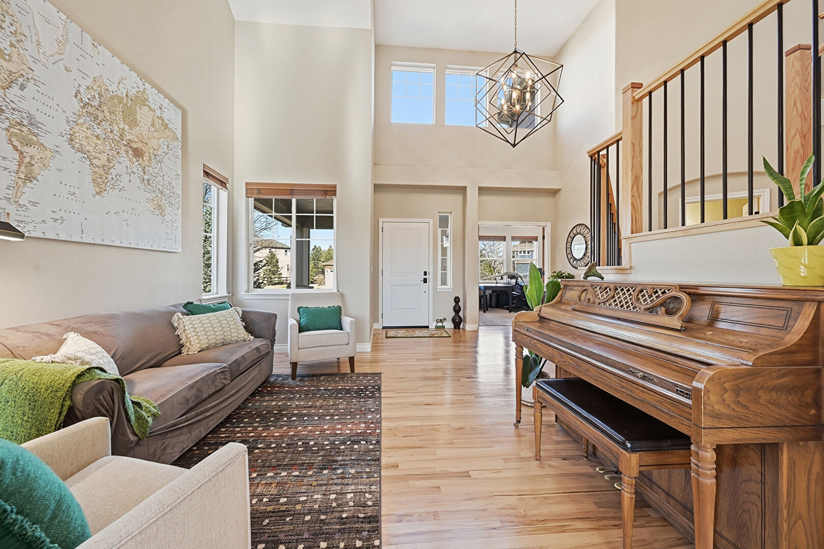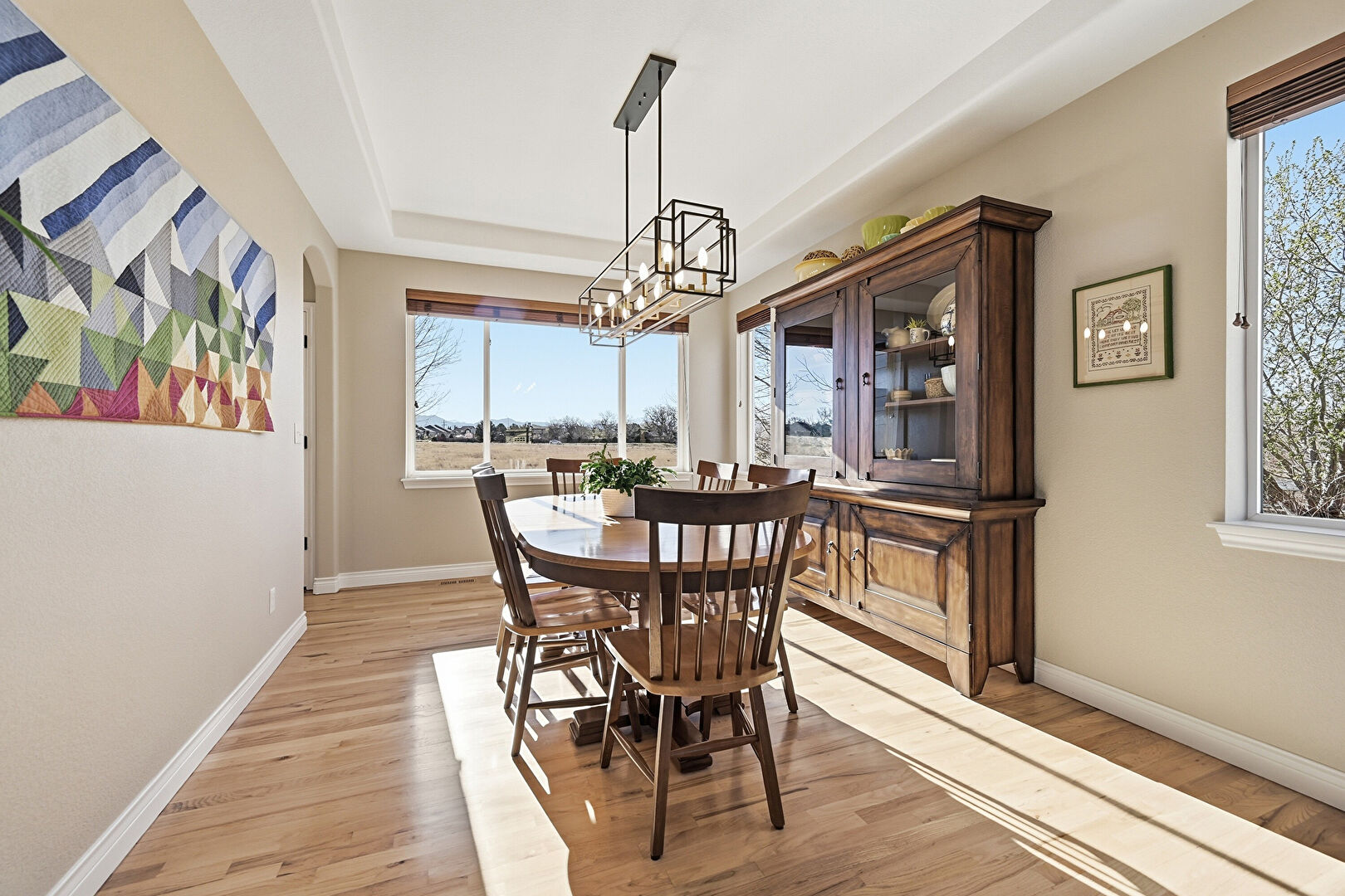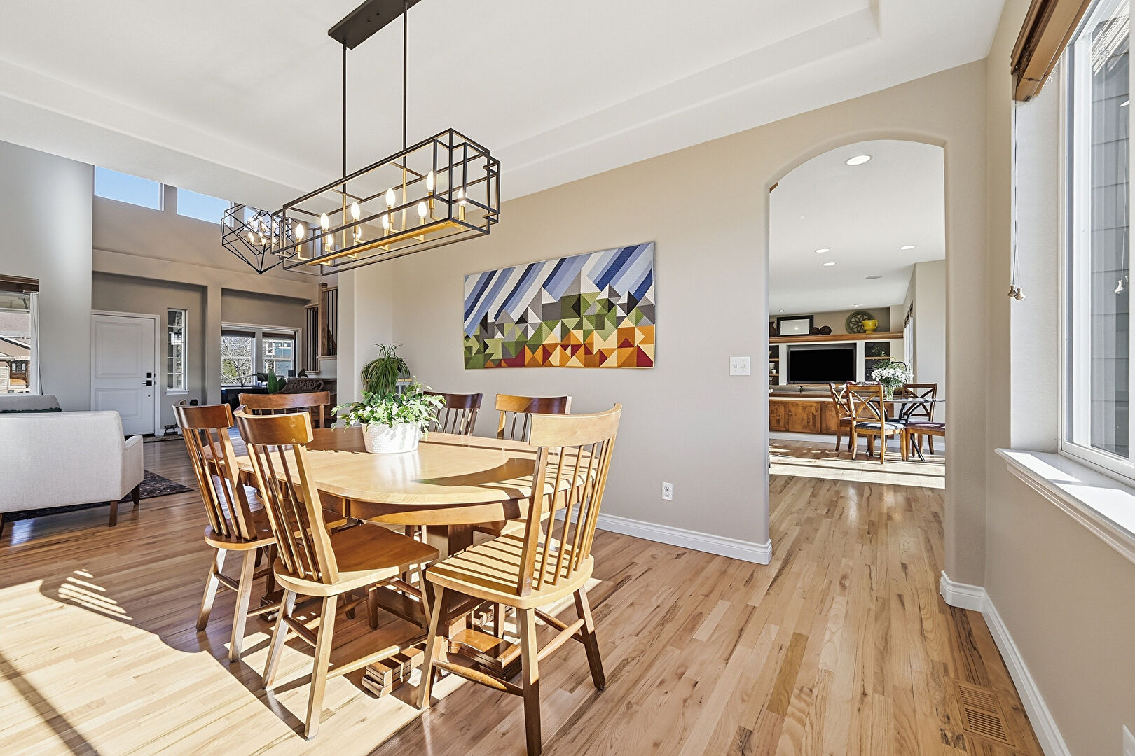 Arched Walkways, Baseboards Wall, Drywall, Natural Light, Notable Chandelier, Recessed Lighting, Tray Ceiling, Wood Finish Floor, High Ceiling, Vent, Wood Finish Floor