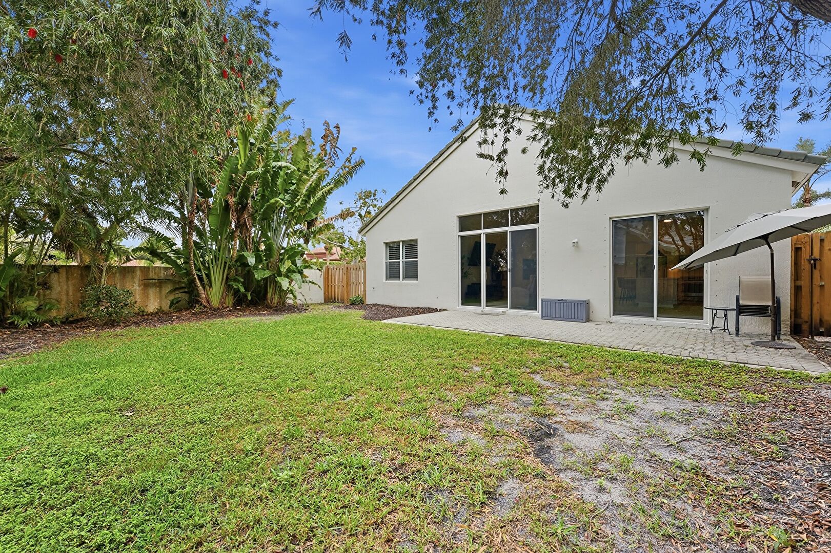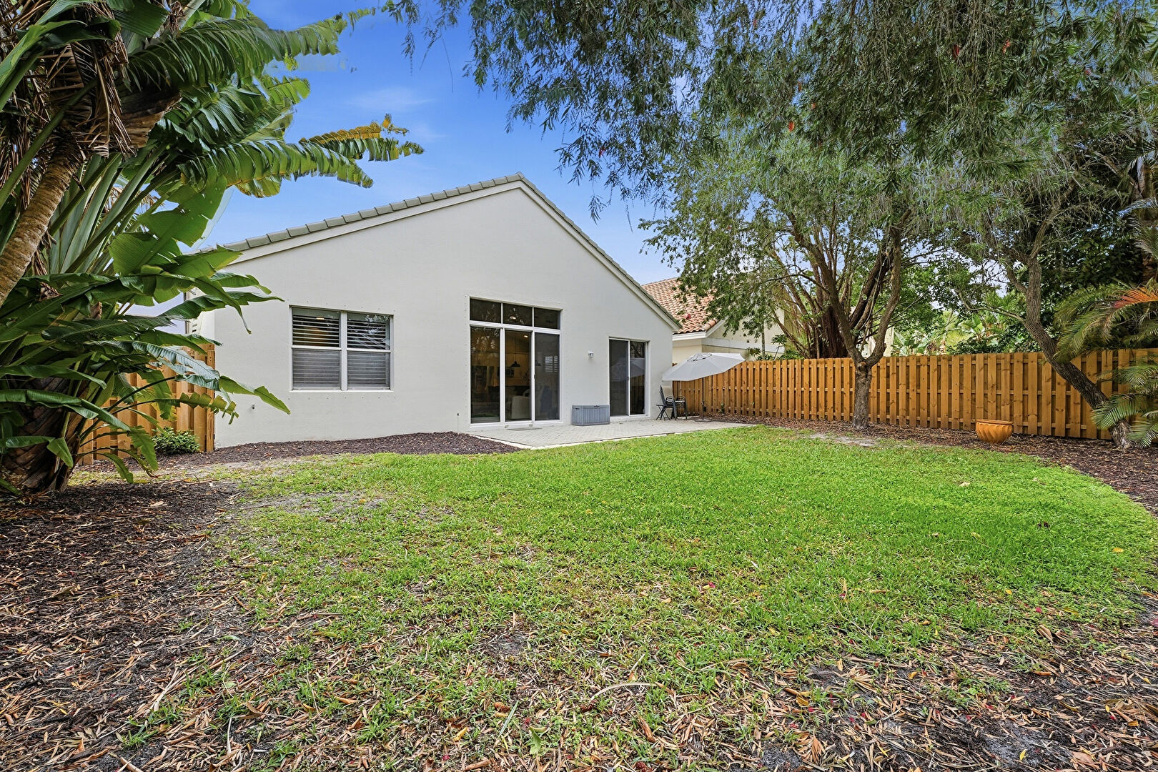Fence, Lawn, Patio, Stucco Siding, Fence, Tile Roof