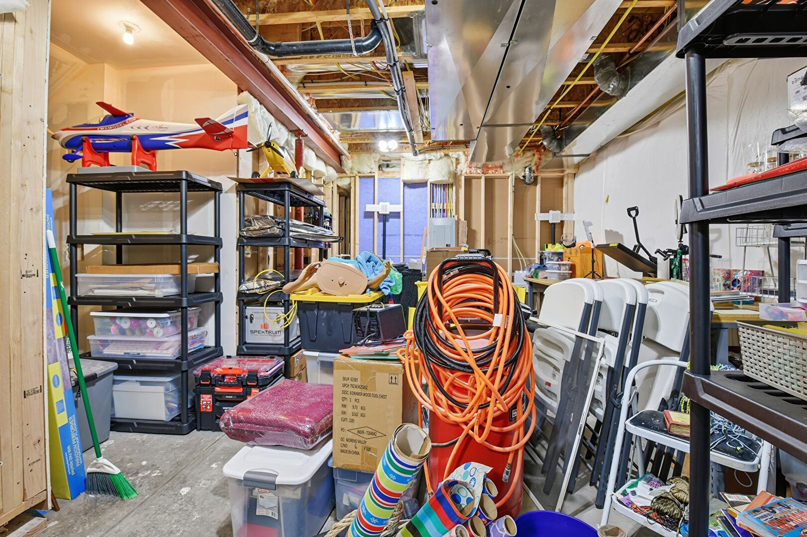 Baseboards Wall, Carpet, Drywall, Natural Light, Office Area, Recessed Lighting, Stairs, Vent, Wood Ceiling, Baseboards Wall, Tray Ceiling