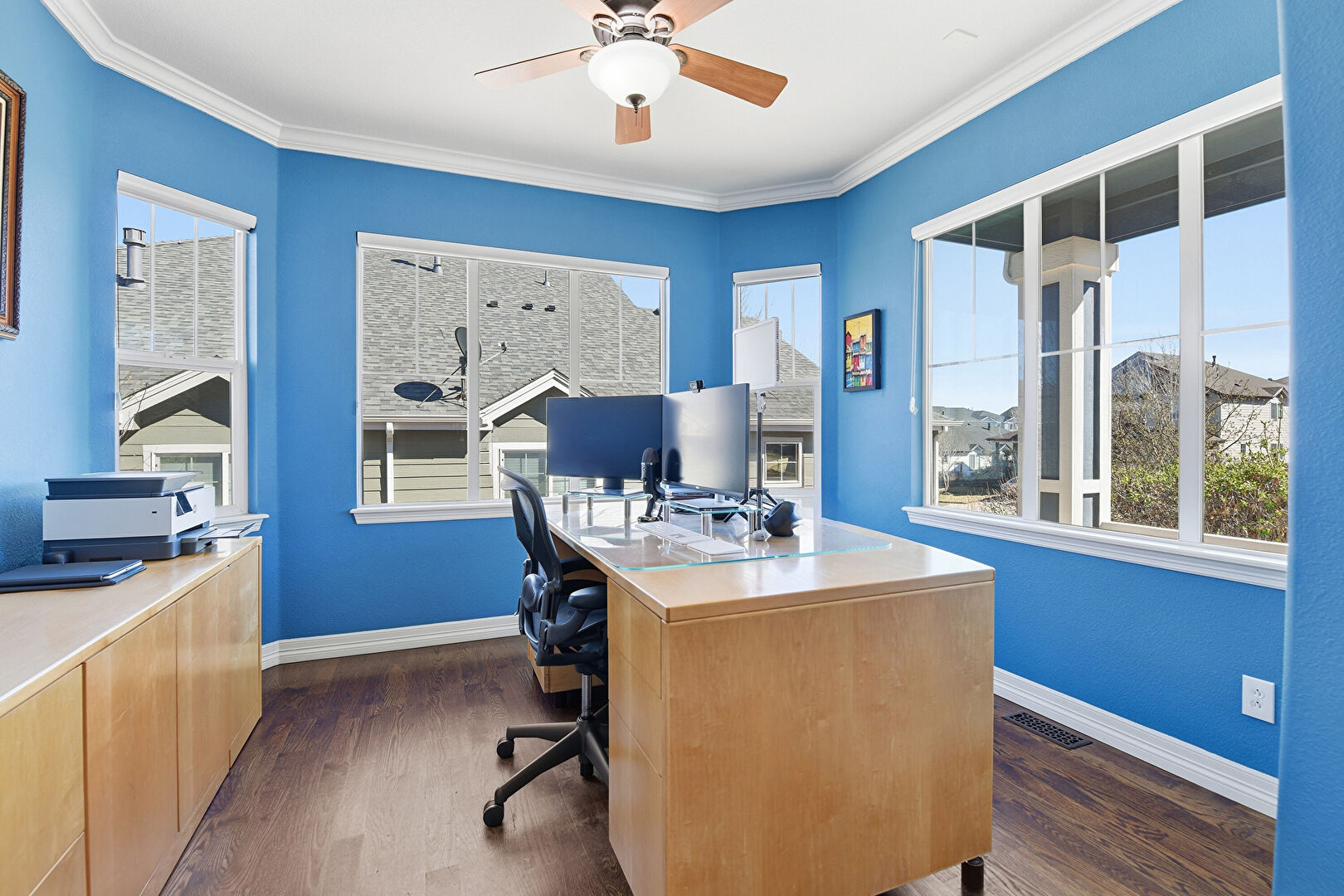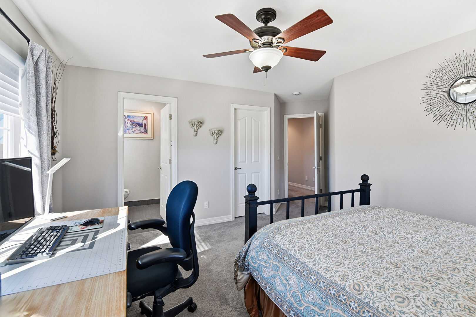 Baseboards Wall, Carpet, Ceiling Fan, Drywall, Ensuite Bathroom, Natural Light, Office Area, Vent, Carpet, Natural Light