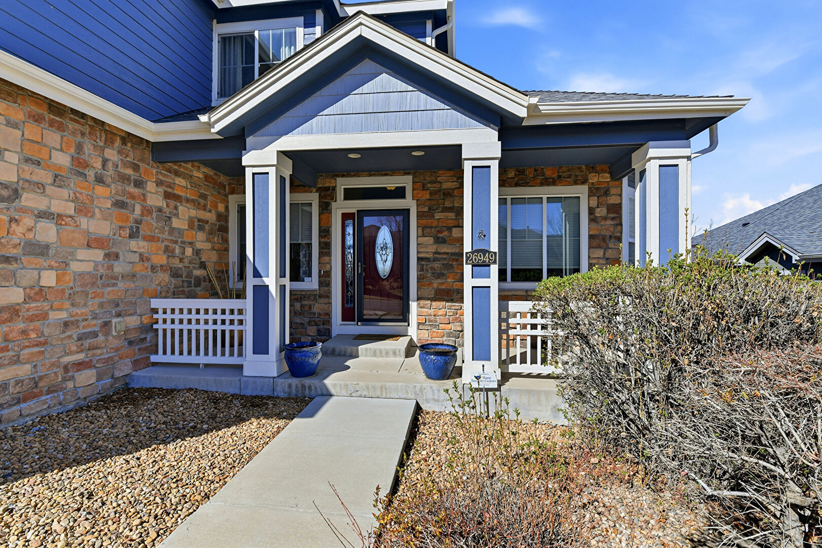 Gutters, Horizontal Siding, Porch, Stone Siding, Downspout