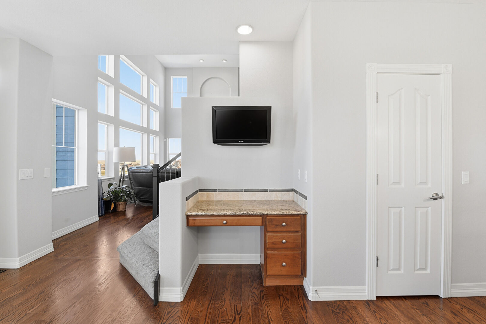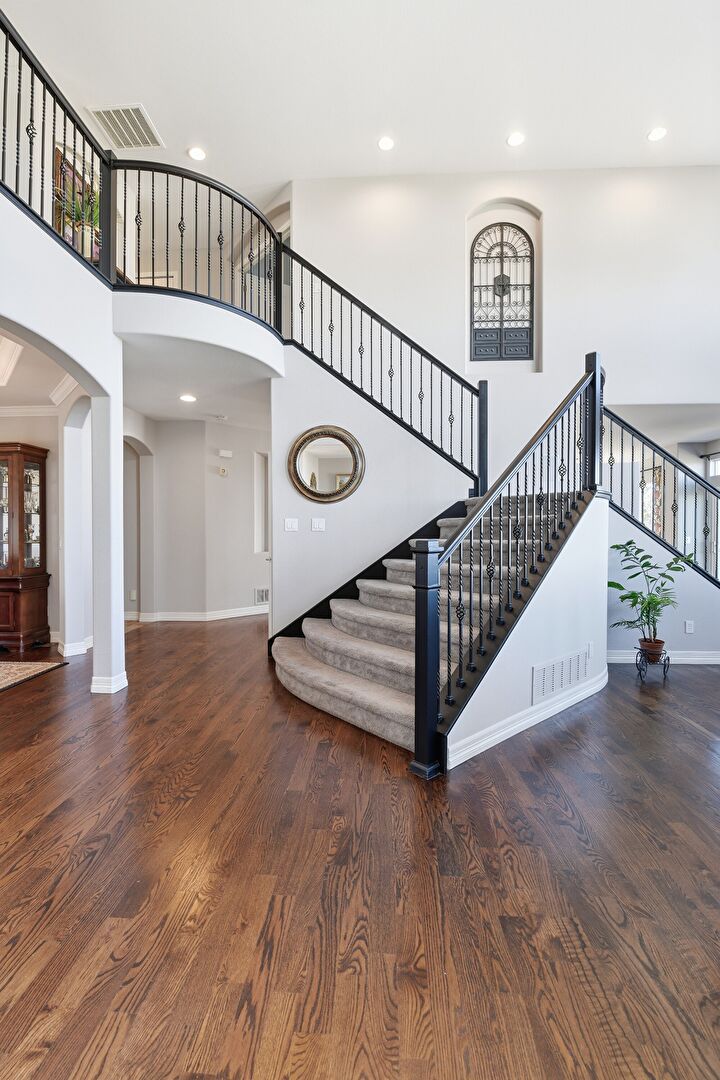Baseboards Wall, Drywall, Natural Light, Recessed Lighting, Stairs, Vent, Wood Finish Floor, Natural Light, Recessed Lighting