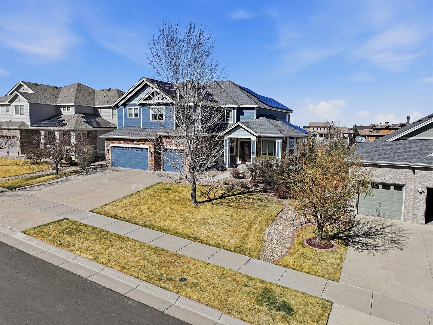 Built In Garage, Deck, Downspout, Driveway, Fence, Golf Course View, Horizontal Siding, Lawn, Patio, Porch, Residential View, Satellite Dish, Shingle Roof, Stone Siding, Water View, Built In Garage, Golf Course View, Gutters, Mountain View, Residential View, Solar Panels, Stairs, Water View