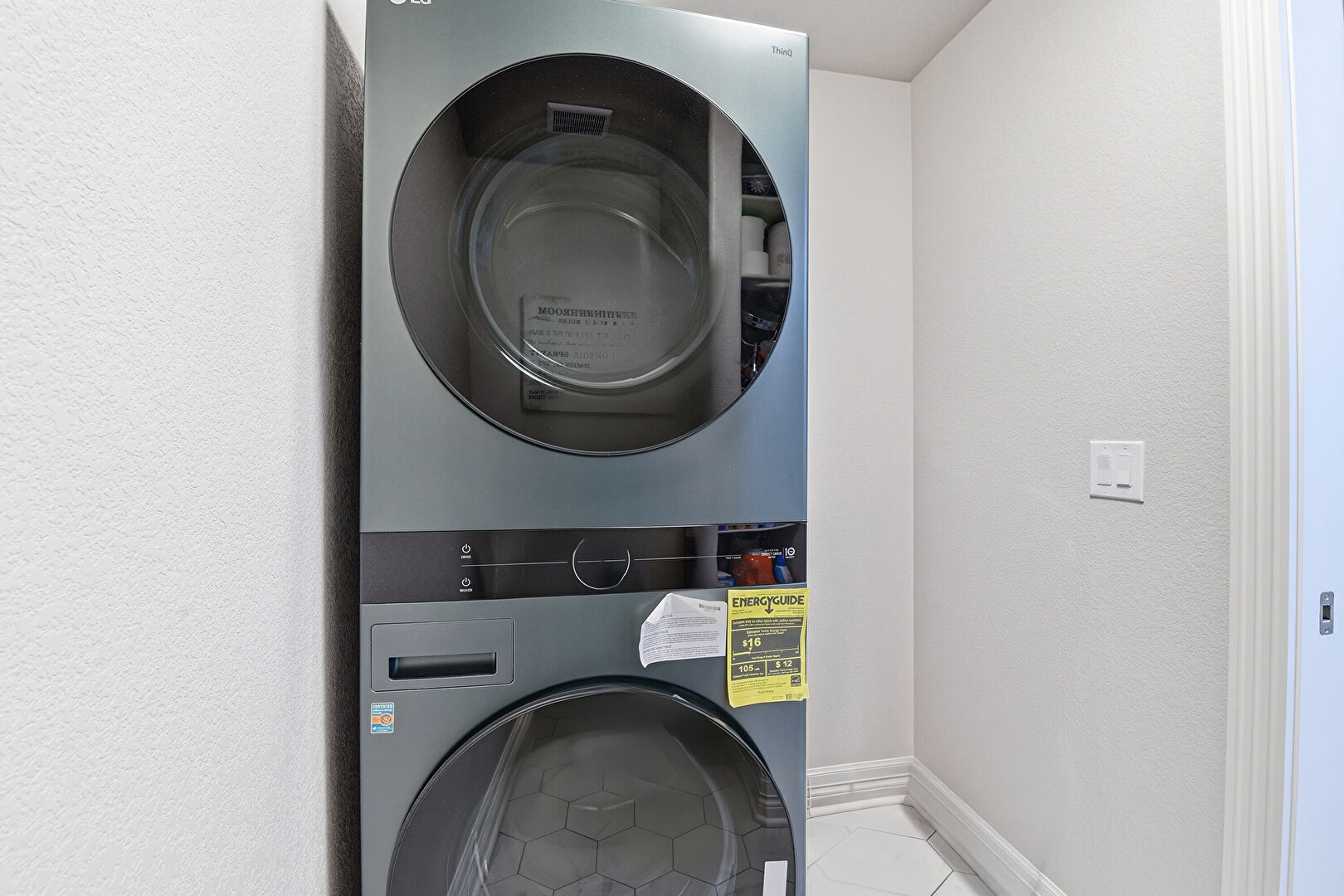 Laundry, Textured Wall, Tile Floor, Baseboards Wall