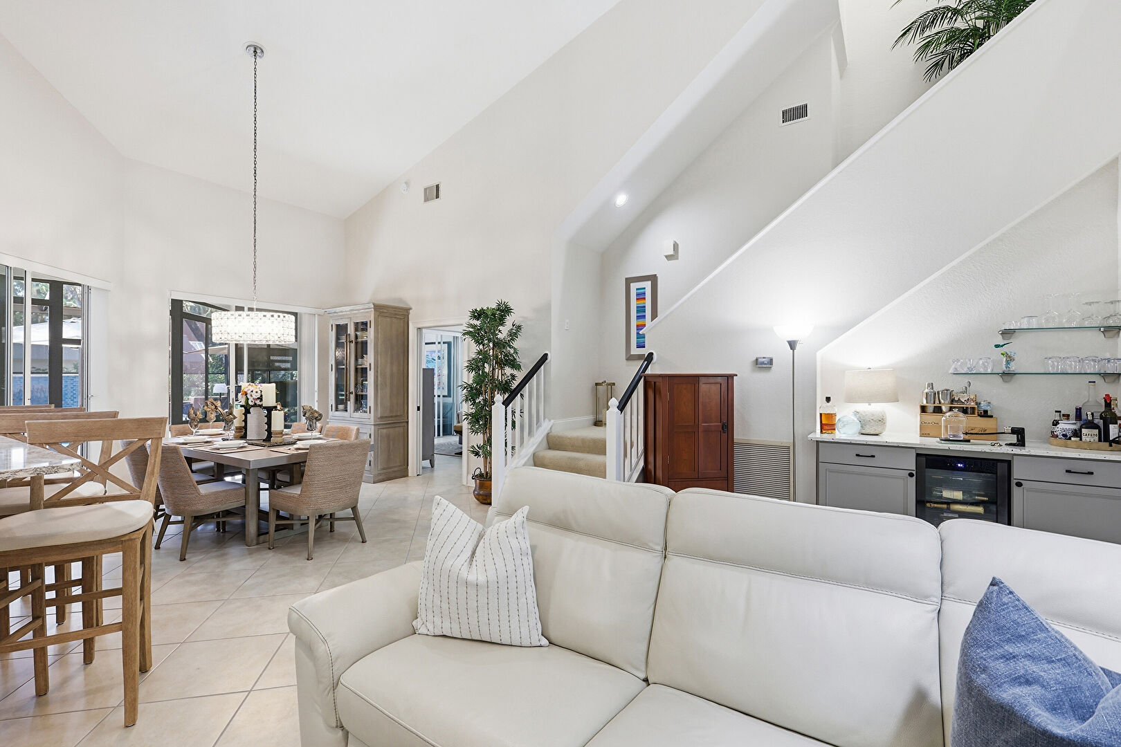 Baseboards Wall, Ceiling Fan, Drywall, Fireplace, High Ceiling, Indoor Bar, Natural Light, Notable Chandelier, Recessed Lighting, Stairs, Tile Floor, Vaulted Ceiling, Vent, Wine Cooler, Baseboards Wall, Ceiling Fan, Drywall, Fireplace, High Ceiling, Stairs, Tile Floor