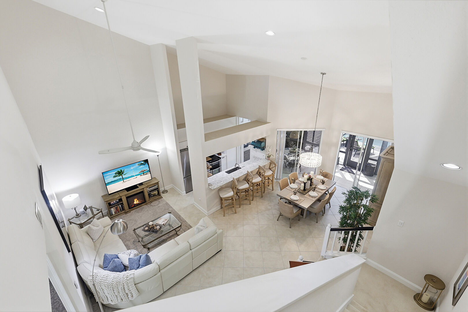 Baseboards Wall, Ceiling Fan, Drywall, Fireplace, High Ceiling, Natural Light, Notable Chandelier, Recessed Lighting, Stairs, Tile Floor, Vaulted Ceiling, Vent, Wine Cooler, Drywall, High Ceiling, Natural Light, Notable Chandelier, Vent