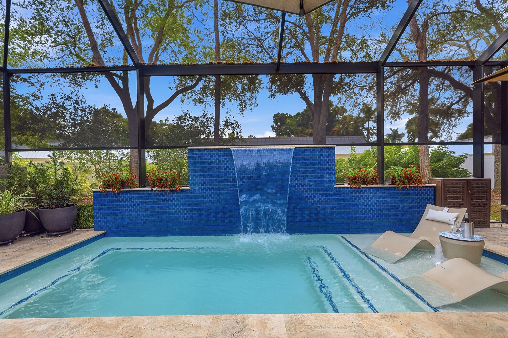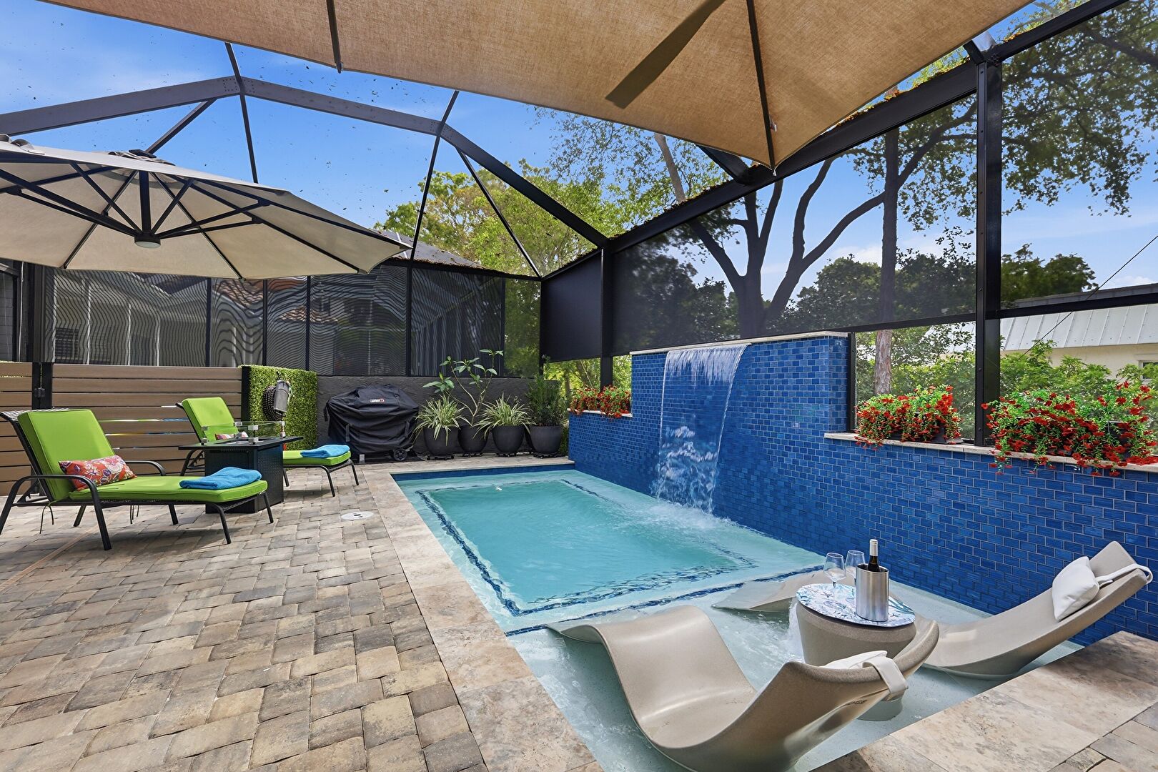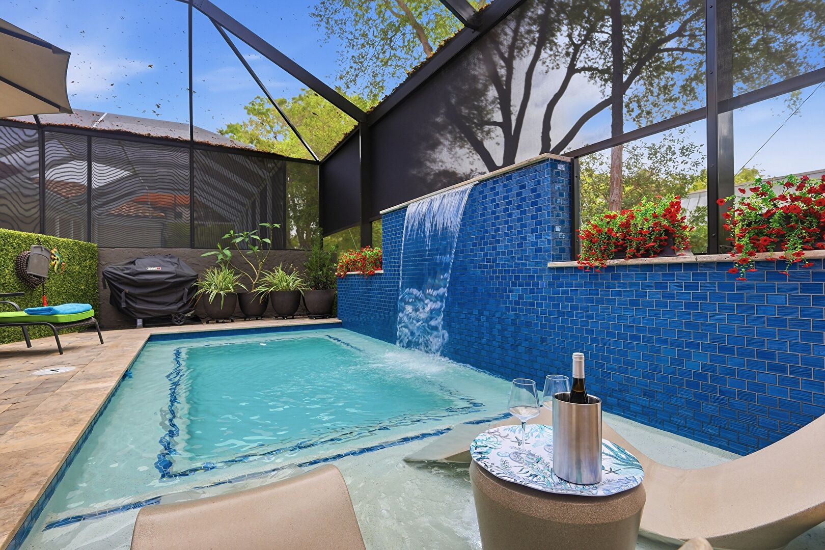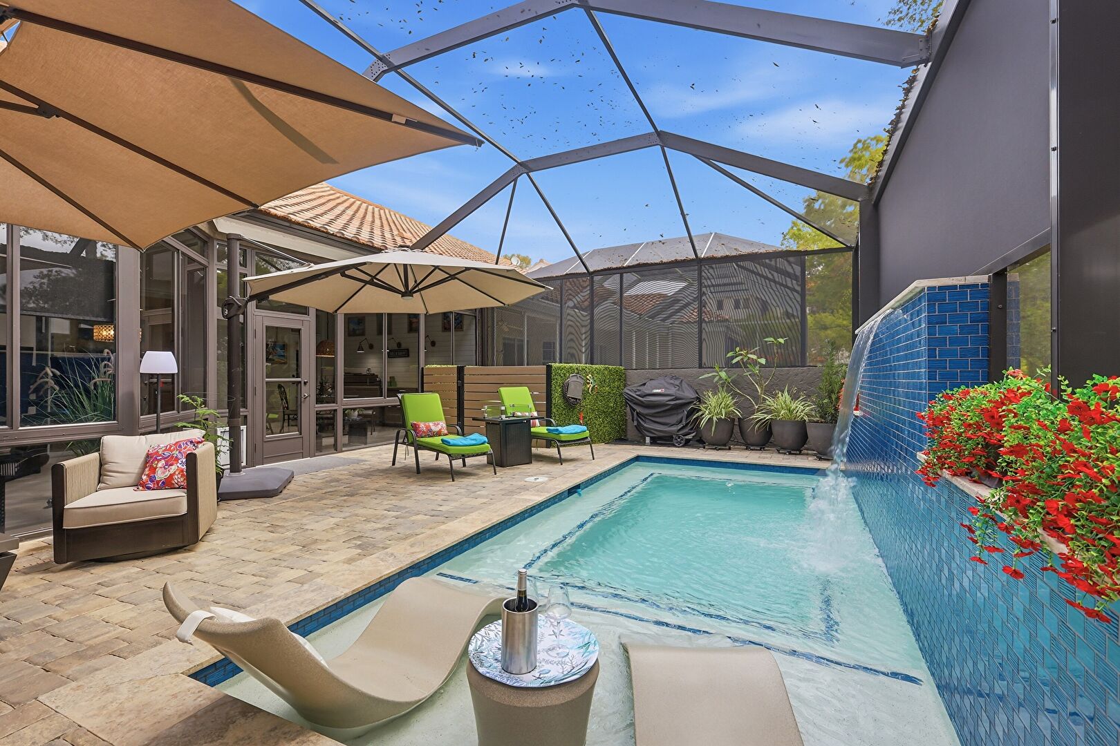 Grill, Hot Tub, Lanai, Outdoor Living Space, Patio, Pool, Pool Water Feature, Sunroom, Grill, Lanai, Pool Water Feature, Sunroom