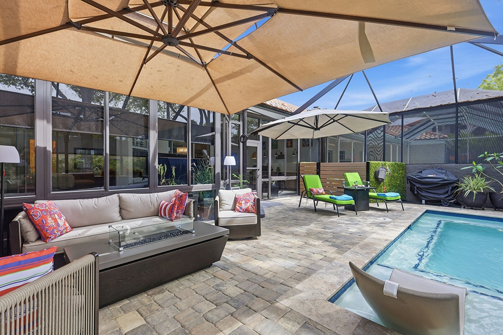Fire Pit, Grill, Lanai, Outdoor Living Space, Patio, Pool, Sunroom