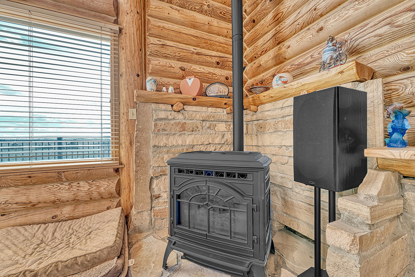 Log Wall, Wood Stove