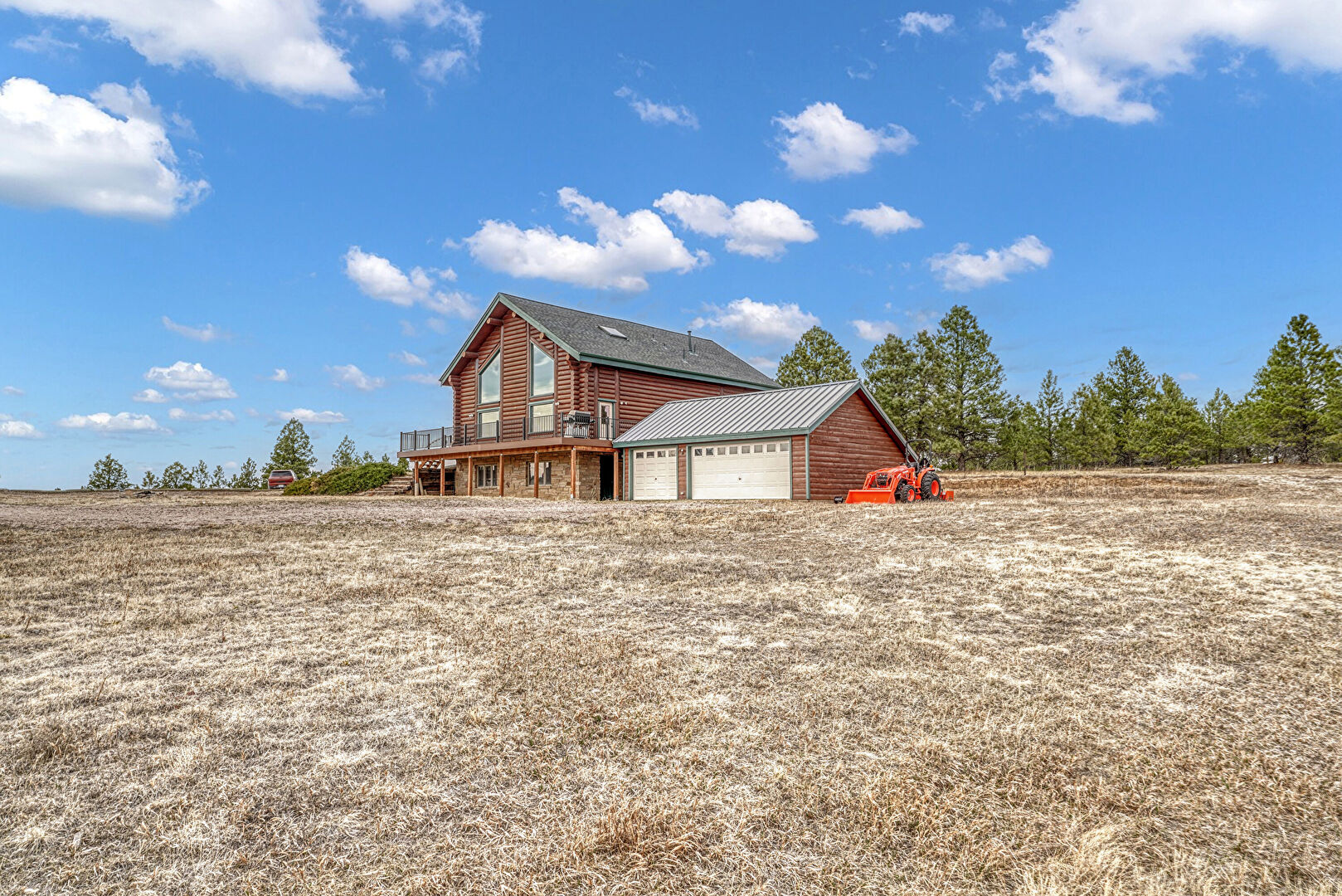 Central Ac, Garage, Horizontal Siding, Log Siding, Log Veneer Siding, Metal Roof, Rural View, Horizontal Siding, Stone Siding