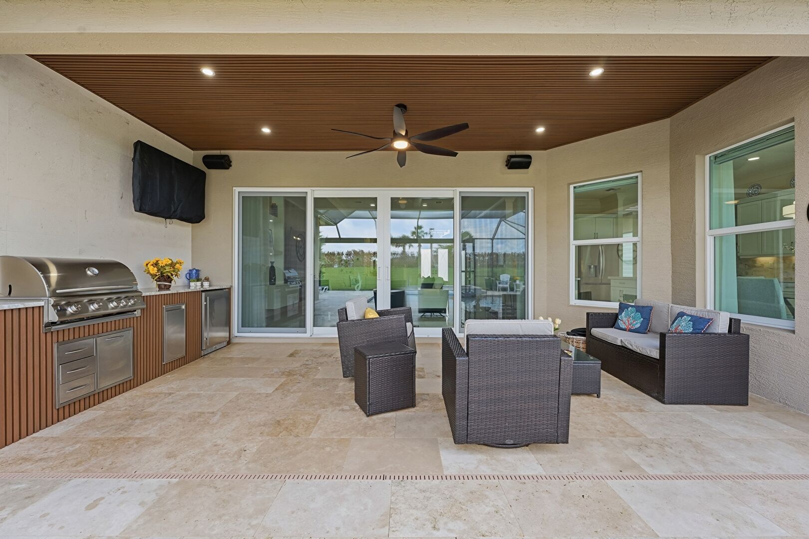 Ceiling Fan, Grill, Outdoor Kitchen, Outdoor Living Space, Patio, Grill, Patio