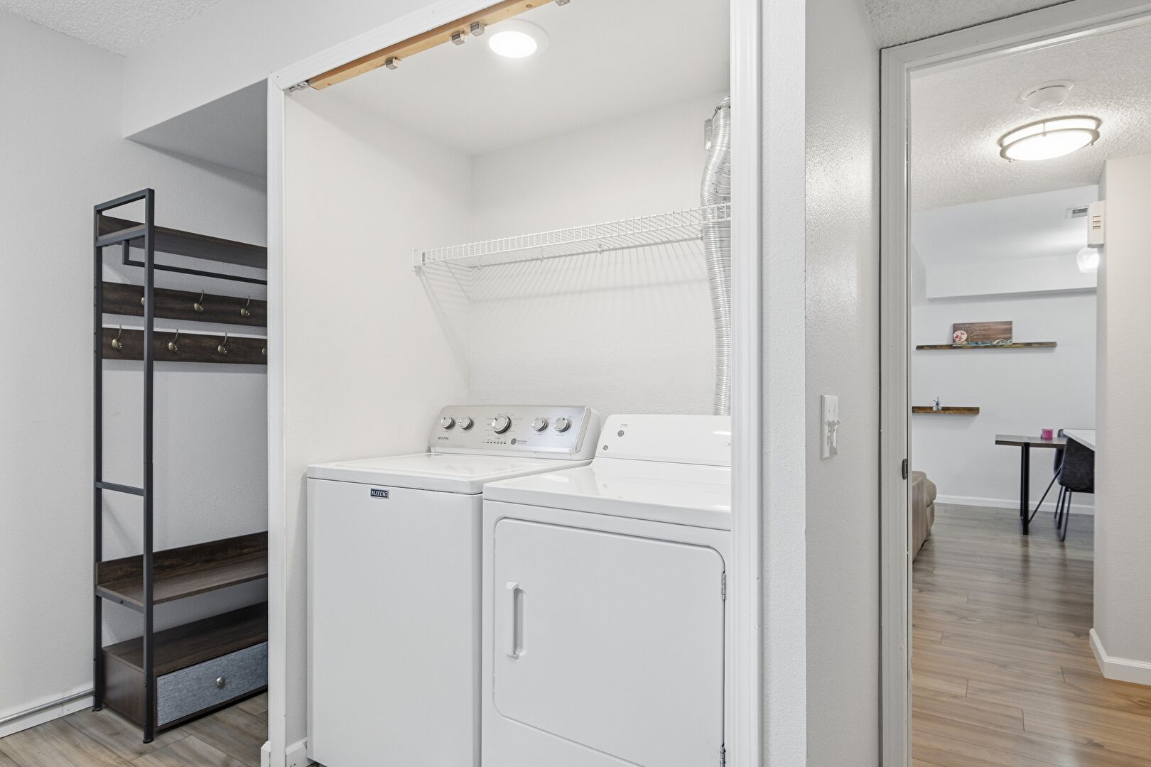 Drywall, Laundry, Smoke Carbon Monoxide Detector, Textured Ceiling, Wood Finish Floor, Baseboards Wall