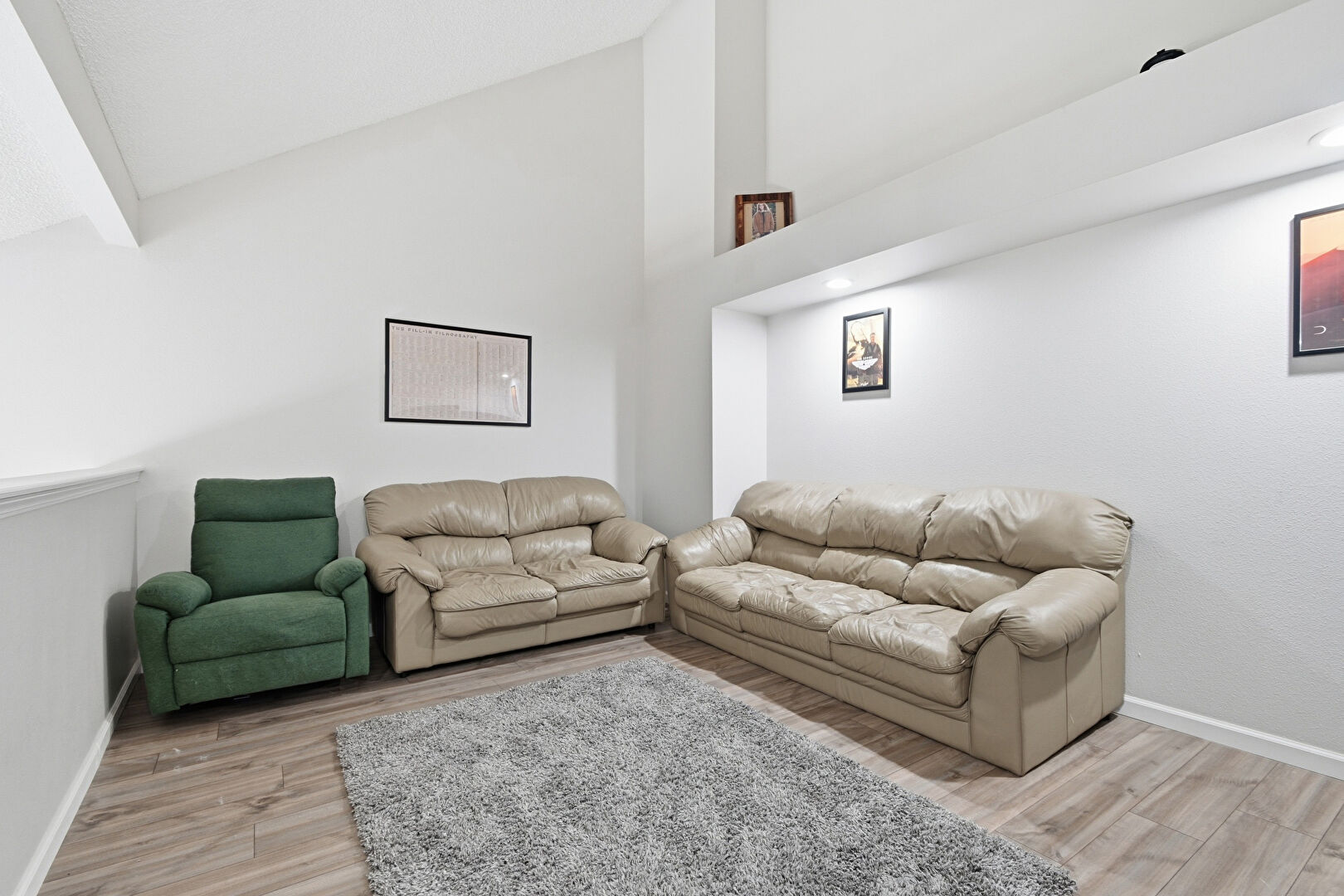 Baseboards Wall, Drywall, High Ceiling, Recessed Lighting, Textured Ceiling, Vaulted Ceiling, Wood Finish Floor, Drywall, High Ceiling, Recessed Lighting