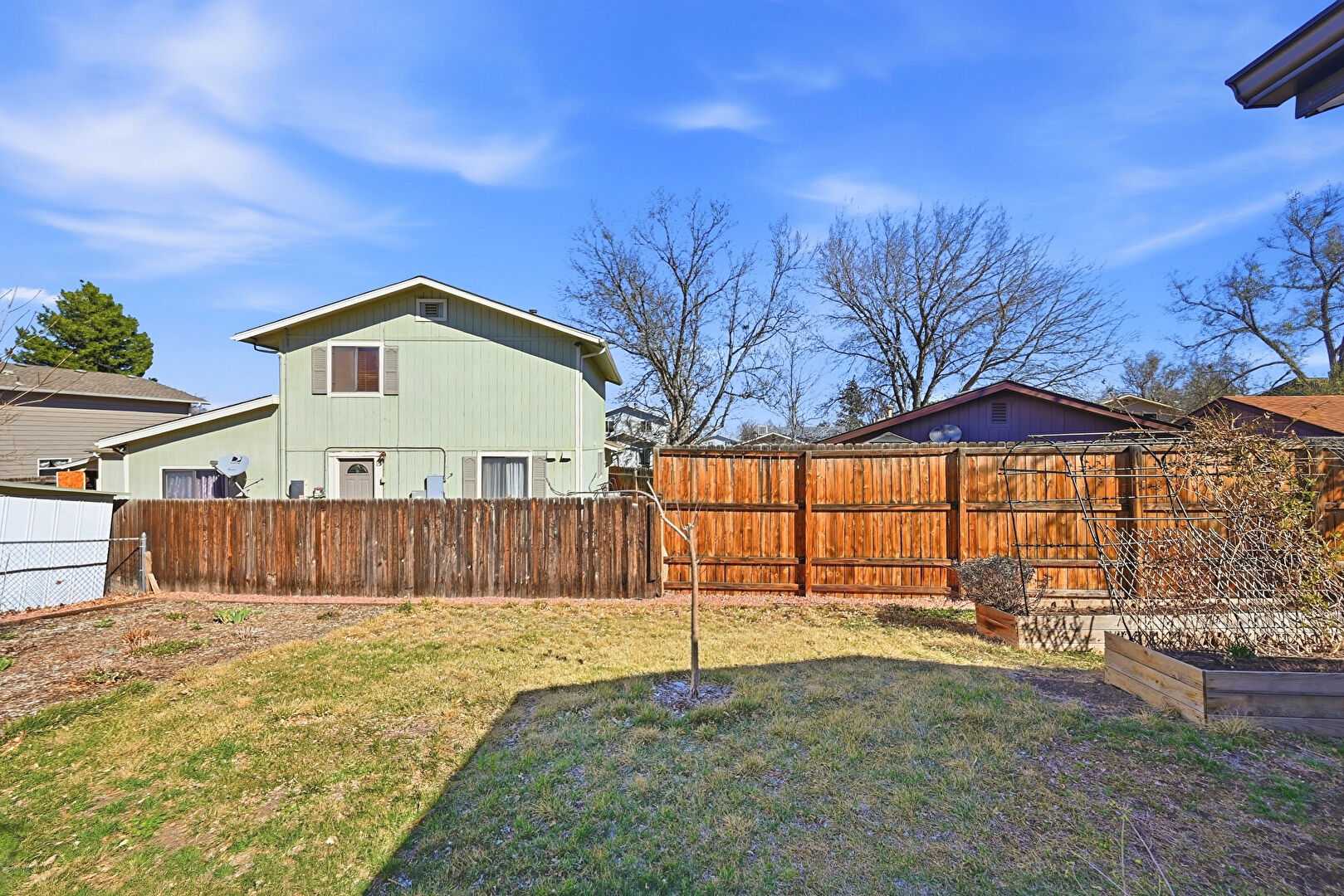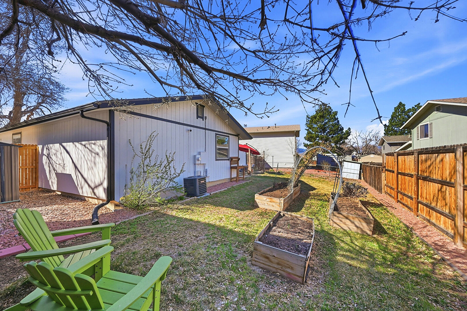 Central Ac, Concrete Foundation, Fence, Garden, Lawn, Outdoor Structure, Patio, Residential View, Shingle Roof, Vertical Siding, Fence, Patio