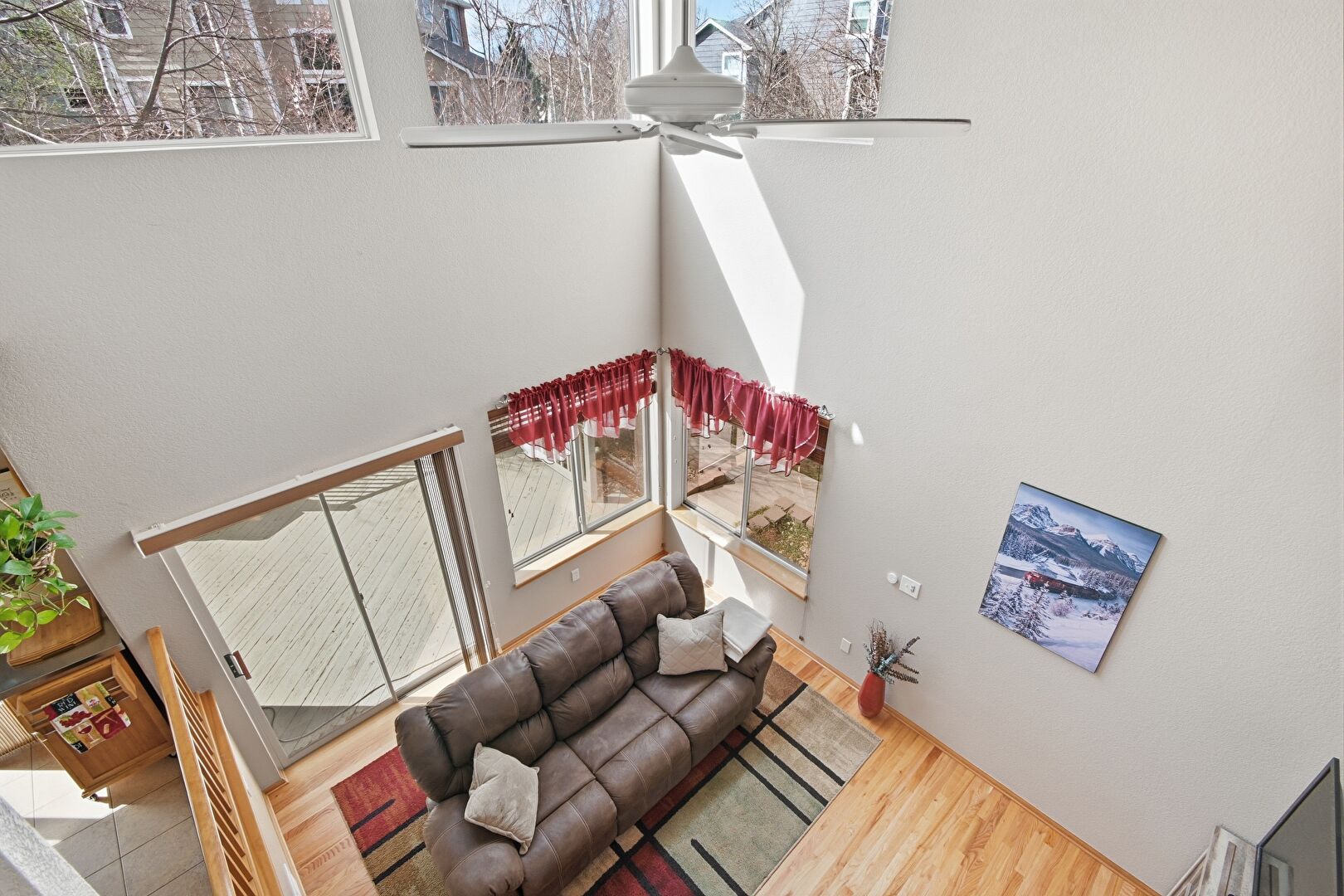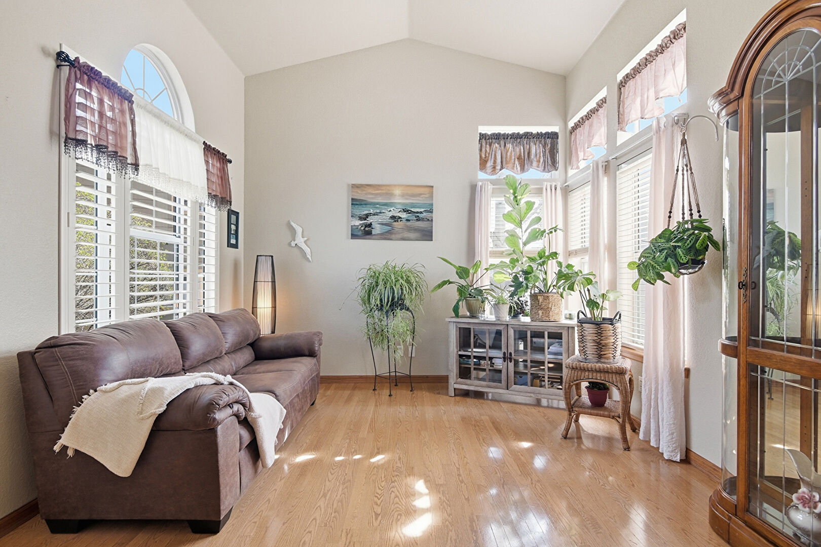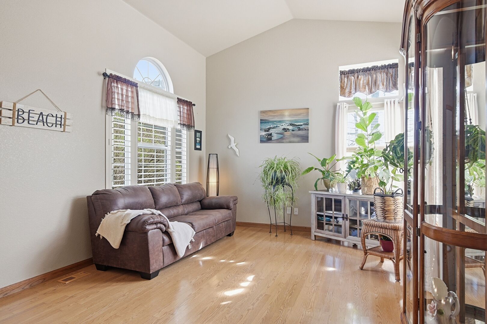 Baseboards Wall, Drywall, High Ceiling, Vaulted Ceiling, Wood Finish Floor, Natural Light