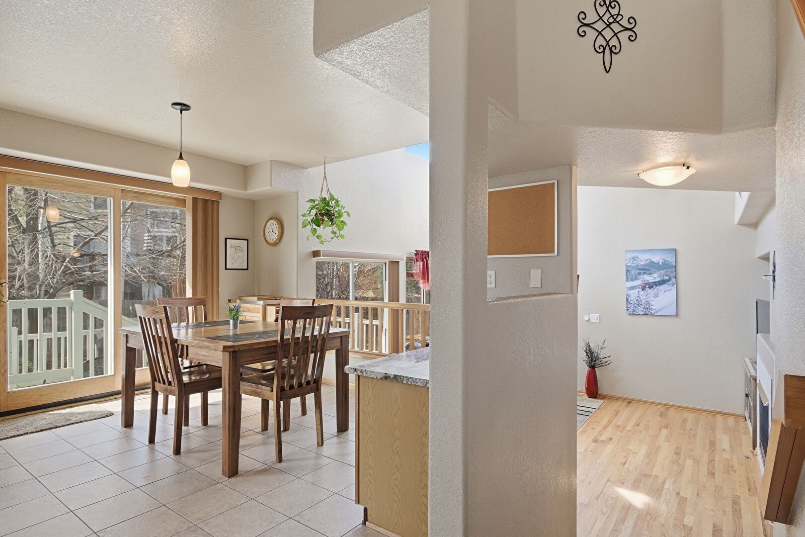 Baseboards Wall, Ceiling Fan, Drywall, Natural Light, Recessed Lighting, Textured Ceiling, Tile Floor, Wood Finish Floor, Natural Light, Textured Ceiling