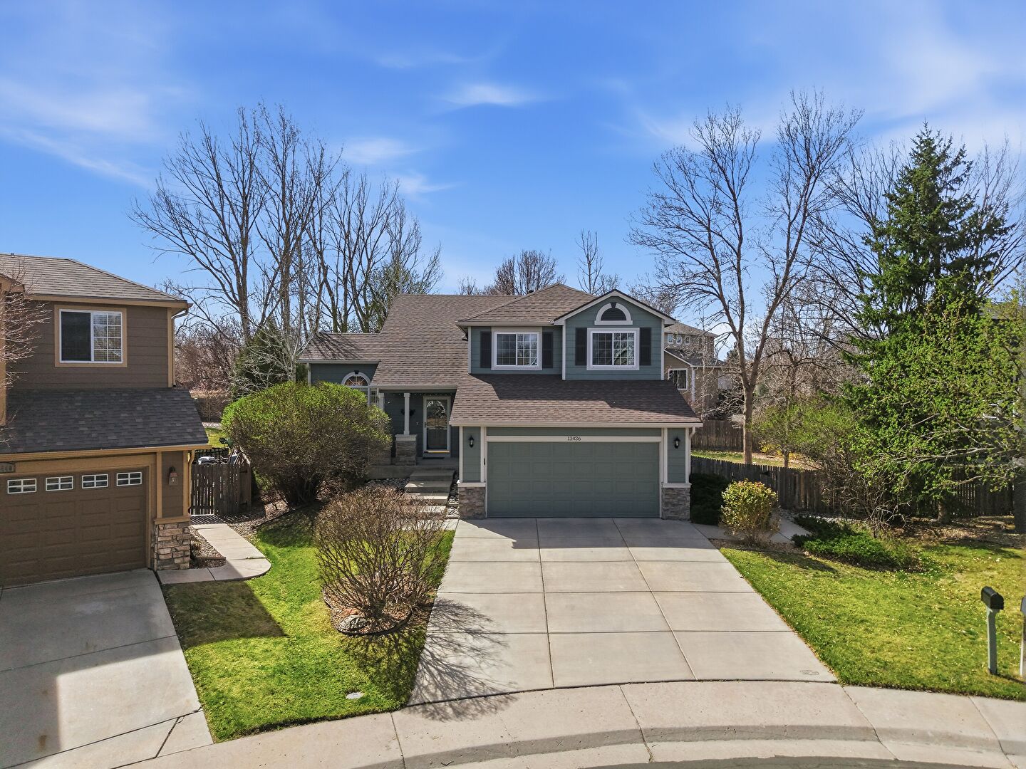 Built In Garage, Downspout, Driveway, Fence, Gutters, Horizontal Siding, Lawn, Residential View, Shingle Roof, Stone Siding, Stoop, Stucco Siding, Woods View, Built In Garage, Deck, Downspout, Driveway, Shingle Roof