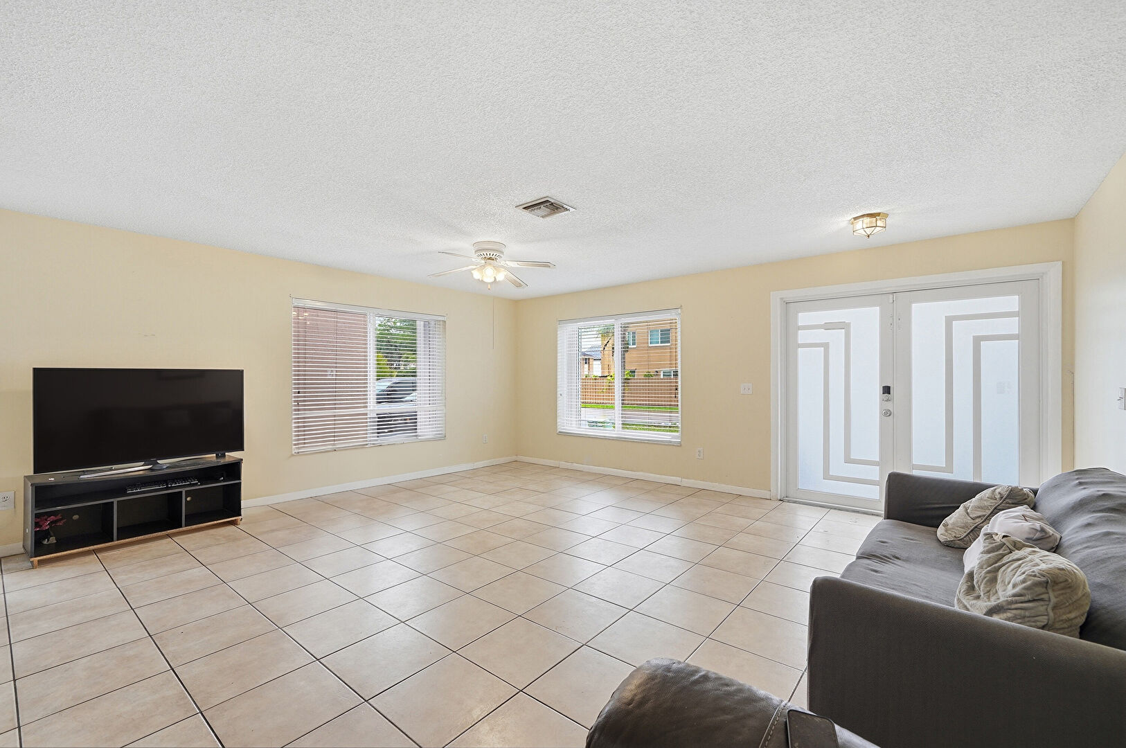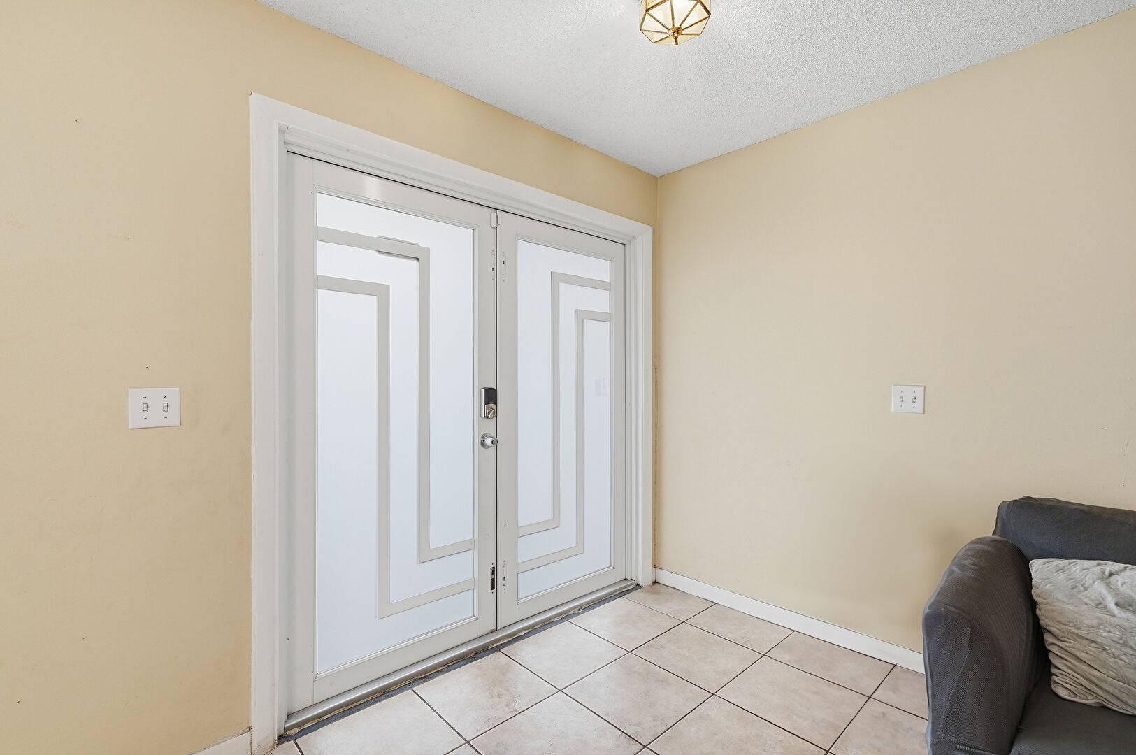 Baseboards Wall, Drywall, French Doors, Textured Ceiling, Tile Floor