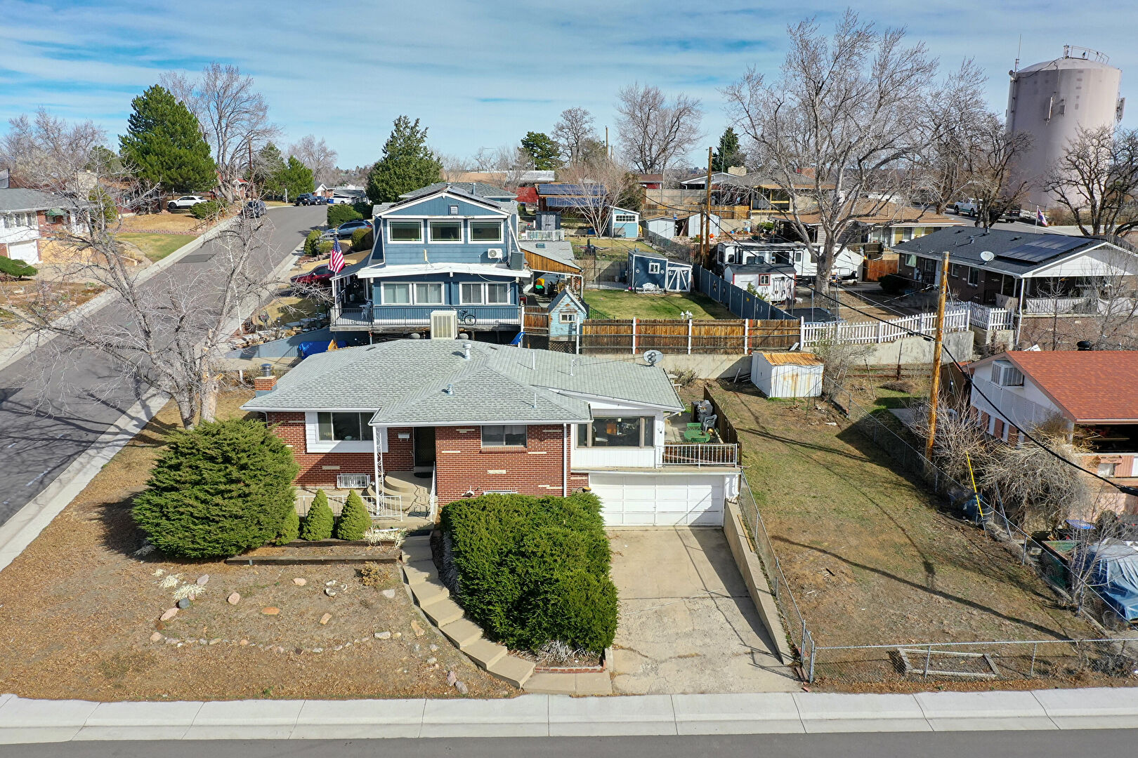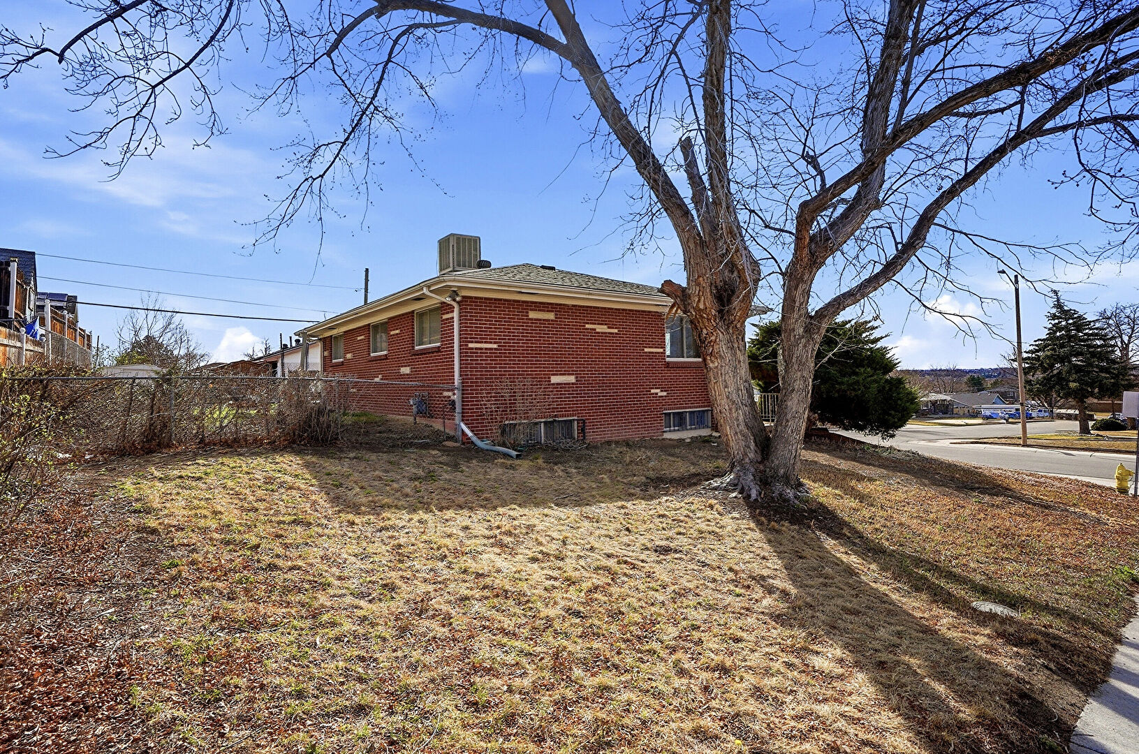 Brick Siding, Central Ac, Fence, Gas Meter, Gutters, Lawn, Downspout
